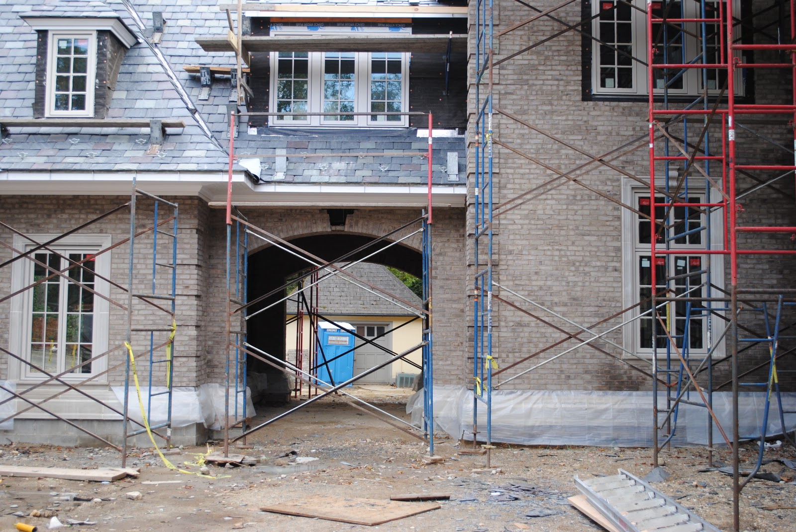 So this morning I will go to the new home which still sits amongst mounds and mounds of snow…but thankfully our work crew is diligently working despite the frigid temps. Mostly inside work at this point, right now its too cold to finish the limestone work. I enclose mostly pictures of the breakfast room elevation mostly because its the only one that is totally done and you get to see the finished product. Our goal is that the house will look old and as though its been there a long time.? We will achieve this through carefully thought out landscaping which will will compliment and not compete with the already beautiful and mature landscape. Also we will grow ivy over select parts of the home. So in showing you the new….thought it would be fun to show you pictures of the old. We had so many wonderful and cherished memories in the 7 years that we lived in our previous house, it will always be remembered fondly. Our other home was a classic Georgian and we furnished it accordingly whereas our new house is French all the way, though I plan to use a lot of french influences there will be a bit of English too as I am a huge fan of English interiors. So hope you enjoy going down memory lane with he, first the old house and then in with the new……..
