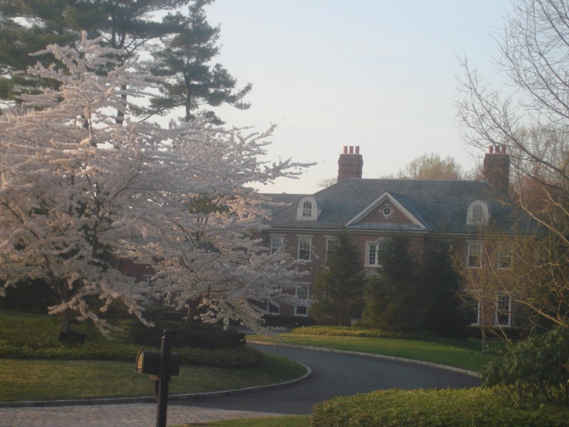 Our old home, a classic Georgian on a lovely spring day, ?while the cherry blossoms are starting to bloom
