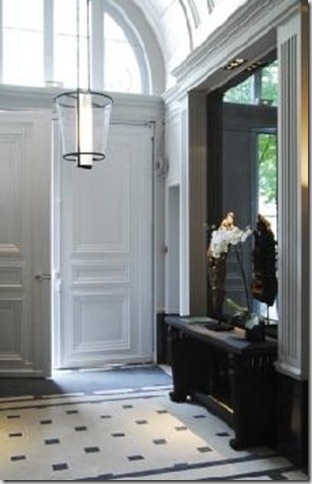 Moving on……I am in the throws of also selecting the flooring for our foyer and hallway which runs the entire width of the house and front to back. I have decided on the traditional limestone with dots placed on the diagonal. I am going for a french limestone which is very quiet almost no movement and very subdued. In my old house ?I had it with the classic black (it is shown in my original post) but I am considering this time around going with the limestone with a gold/taupe colored marble/stone. It happens to be gorgeous and very french indeed. My husband is not as keen on it however and something tells me we will end up going the black dot route. Nevertheless here are a few pictures I have collected over the years, I only list where I got them if I happen to know but many of these pictures I have had in my online album way before I knew I was going to start an online blog (otherwise I do like to give credit where it is due) Let me know if you have a favorite!?