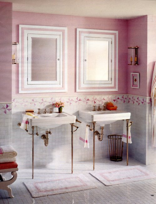 So what do you think about the new trend of pink in rooms? I am personally a fan of pink, I love pink clothes,sleep in pink toile pjs, have pink sweaters and lots of fun accessories however I don’t recall ever using pink to decorate, not that I am opposed to it but I guess in consideration of my very masculine testosterone fueled husband, I have never even thought to “imprison’ him in a pink house!?