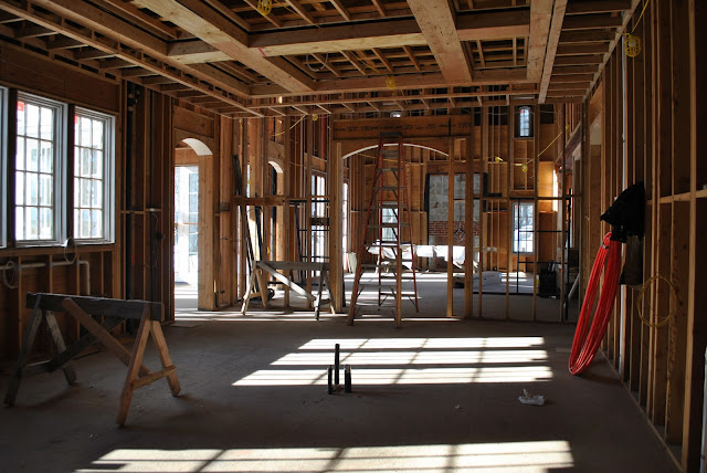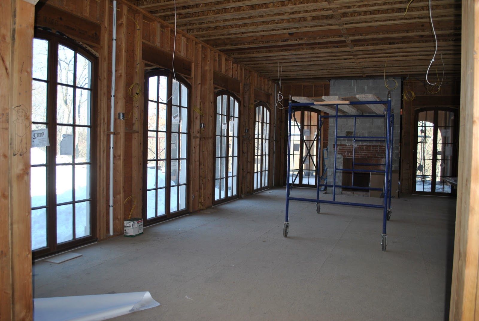 I am dying over all of the enfilades in your house!!!! And the breakfast room window is stunning. I love this stage of construction. So much possibility and wood – I love the raw wood. That family room is amazing too! Keep the pictures coming.
