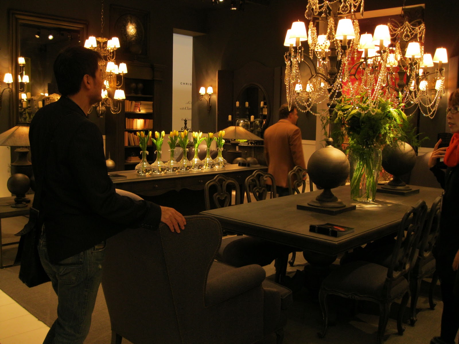 Bon Jour! Oh my….we got back late this morning and I am still floating on a cloud from my wonderful short jaunt to Paris. This is the 4th or 5th time I have been…..so certain “rites of passages” that one normally puts at the top of their must see list have long been checked off mine but there is something so magical even after several visits, about seeing the buildings of The Louvre, the iconic Eiffel tower and the Arc de Triomphe time and time again. We spent most of our time at the Maison & Objet show which was overwhelming, beautiful, inspirational, exciting and totally exhausting (my poor feet even from wearing my most comfortable shoes had to pay the highest price of the miles and miles of walking that we did) So what did we see at the show besides millions of people from all over the world…… The reclaimed wood theme is HUGE and was seen everywhere, saw lots of color everywhere, plenty of modern ( a big reflection of the European market) we got to see the newest Phillipe Starck collection of Baccarat chandeliers, met with the President of the Fendi furniture company. (very much not my style however it is big for the moneyed Russian, Middle Eastern and European set) My husband knew many people there so we got an “insiders take” on many things from trends, to whats new and exciting, to the climate of the home furnishings market which fingers crossed, is improving as hopefully the economy is! I am writing a lot today, I realize but hope you will take the time to read….I have so much to talk about and in reading this post, will help you get the real feel of our trip!