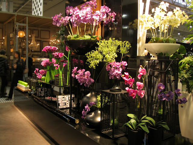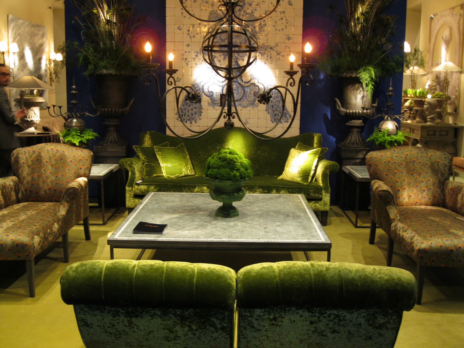 This gorgeous booth was done in the darkest green, almost black and loaded with fabulous lighting and furniture