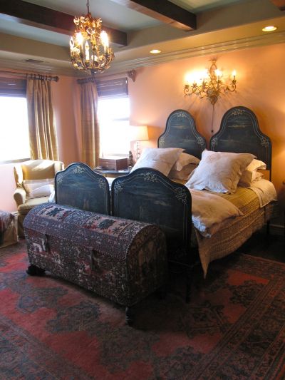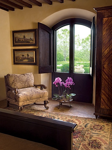 A dressed up Tuscan bedroom, love the painting, the fabulous chair….I will take it! Boutique-Italy