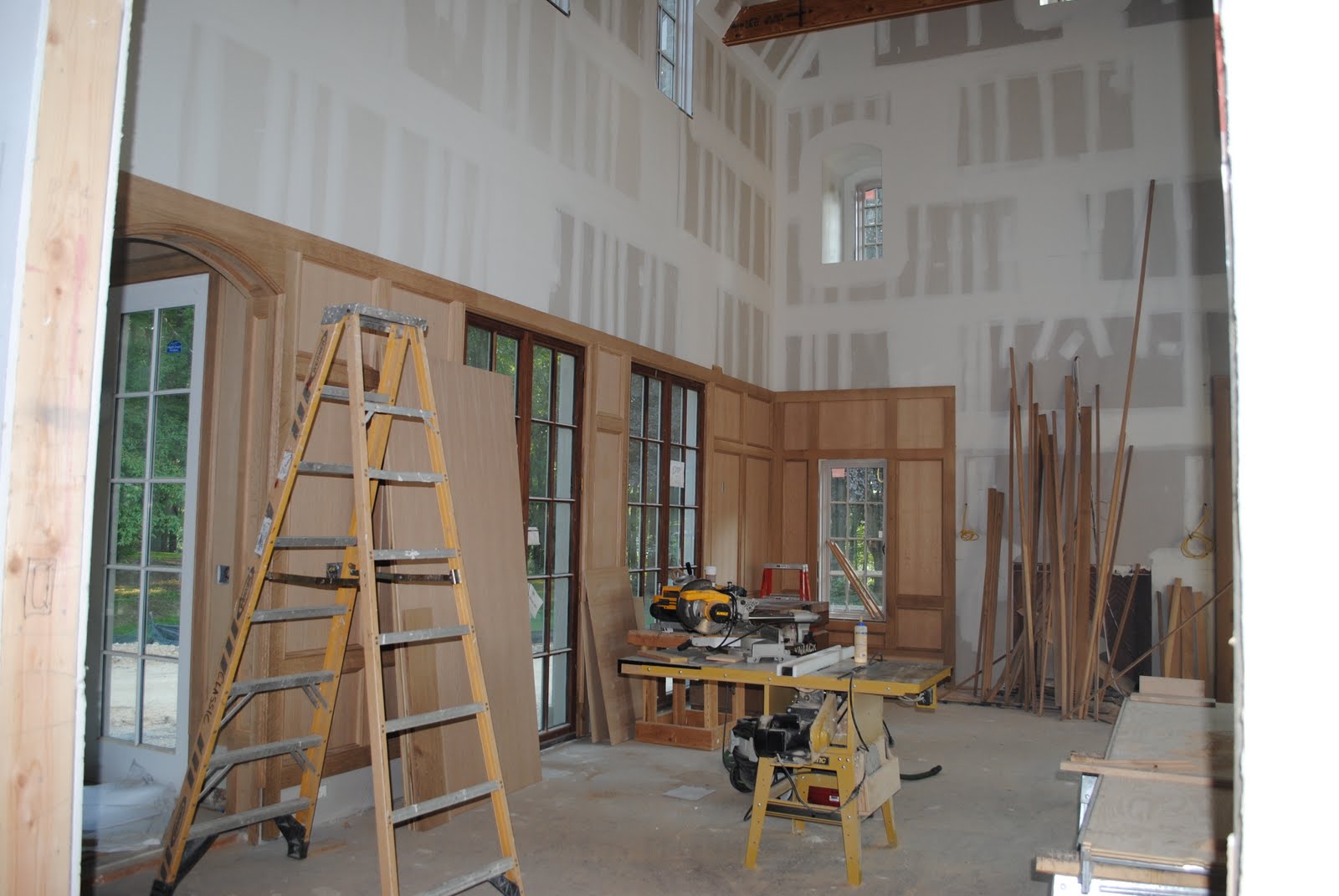 HOUSE UPDATES. The laurels are in bloom!! I had to include a few pictures to show you how gorgeous they are! They line the entire driveway and are all over the property adding such beauty with their fabulous white blooms. Things really are moving along even if it appears to be painstakingly slow. The most progress has been made upstairs, all that’s really left is to finish the trim in the main hallways and paint! Then we will start installing the vanities and plumbing fixtures and voila we will actually have a few completed rooms…as hard as that is to imagine. The breakfast room is basically done, just finishing a few areas of molding (feel like I have saying this for weeks but it really is)! The family room is underway…saw my kitchen two days ago, they just finished priming it and are starting the paint and glaze today. With luck I will have this kitchen by the end of June, that is what we are aiming for. Fingers crossed.?
