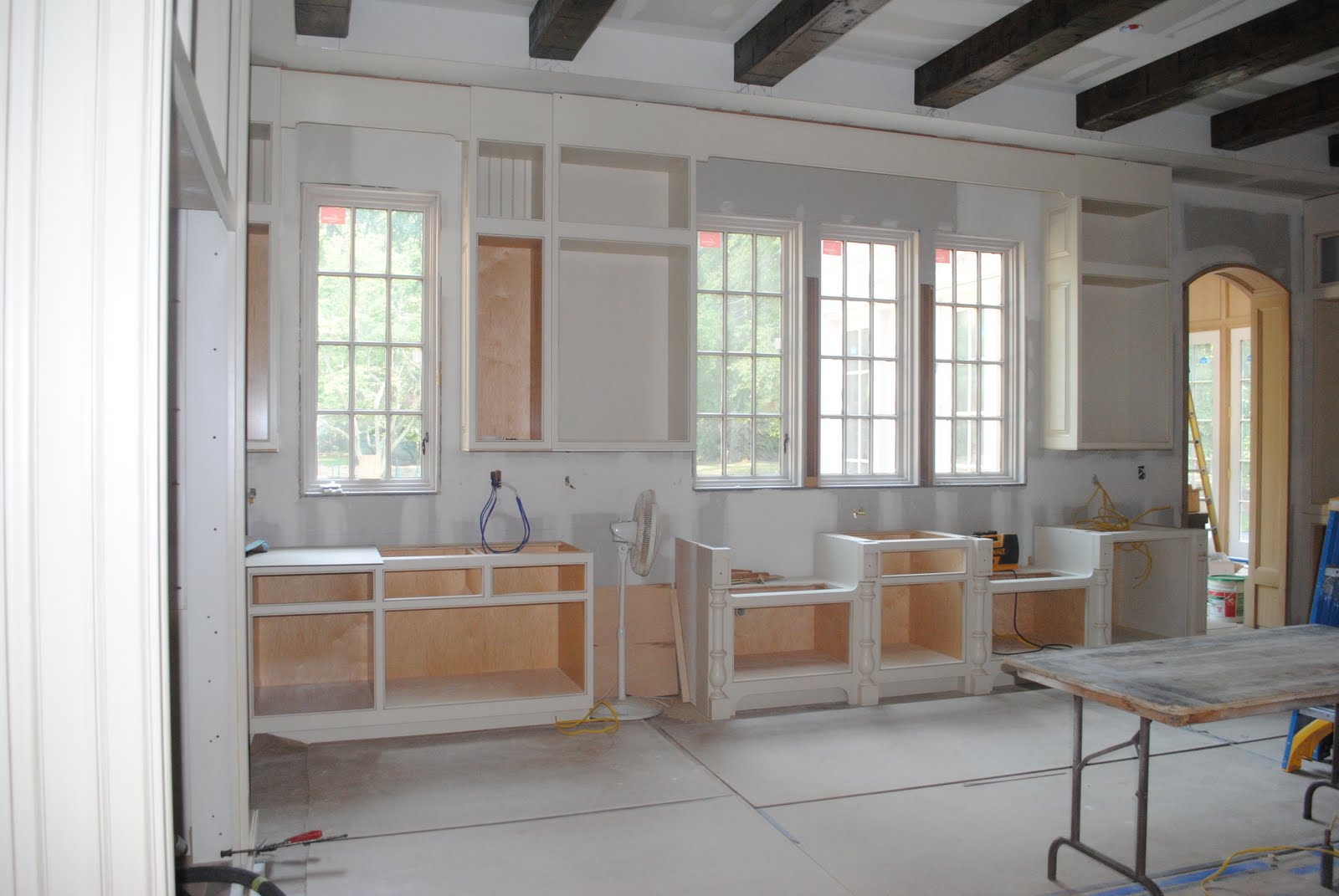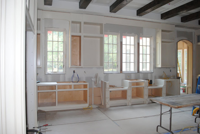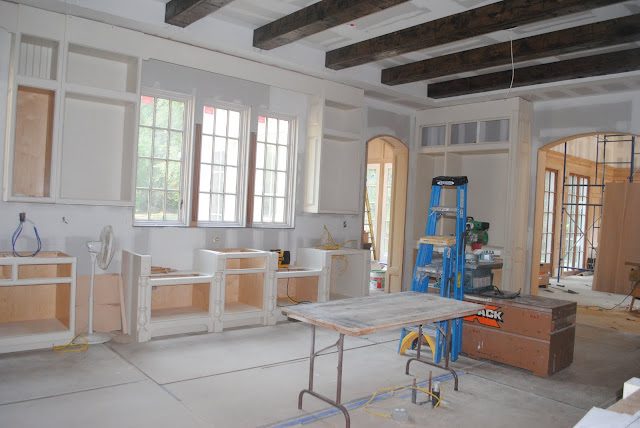 HOUSE UPDATES. The buzz word this week is KITCHEN! So exciting to see it going up, and I am loving every tiny inch of this baby! It is so far exactly as I had envisioned and I couldn’t be happier with it. I am also so happy I insisted that we change from the coffered ceiling to the beams, to me they will ‘make” the kitchen, well that and the floors. And the European range. Oh and the limestone hood! But then the cabinets are pretty amazing too….oh well its a collaborative effort!! Much is going on this week. Other big news is that I finally chose the marble slabs, it was a big production to choose 8 slabs. The slabs are quite gorgeous, and the next time you see them you will see them on the countertops installed and ready for some use!