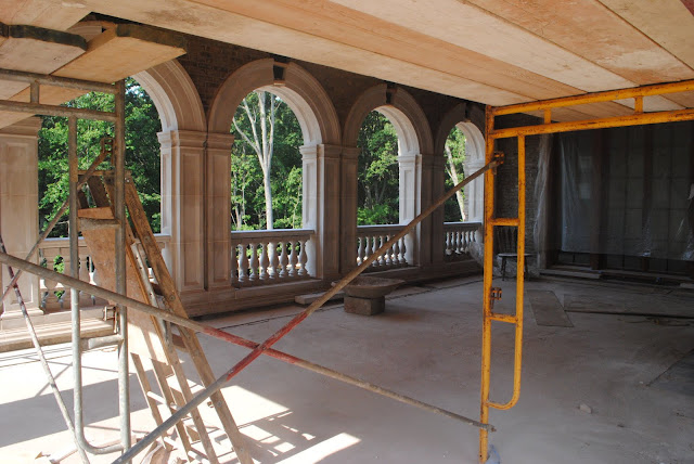 All I can say is I am in total awe of the house you are building, or should I rephrase and say castle because really thats what it is, a modern day castle. The matierals you have chosen are incredible, so tasteful. Not garrish like some you see around here (Alpine, NJ) yours looks like it could be an older home, and take that as a compliment!