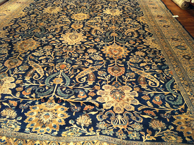 A ROOM UNDERWAY. I am so excited, one room we have started working on to complete is our family room. We selected, after looking many months, the rug which was found at Safavieh in NYC! Once then, did it allowed us to plow ahead into looking for fabrics and furniture to complete the family room, no doubt the one room we will living in. I am really loving what I have so far……mostly rich blues, camels with a check and herringbone, very “Ralph”. So a little sneak peak at the rug and as to what we are doing…..