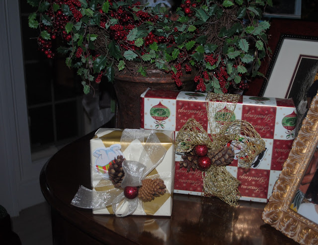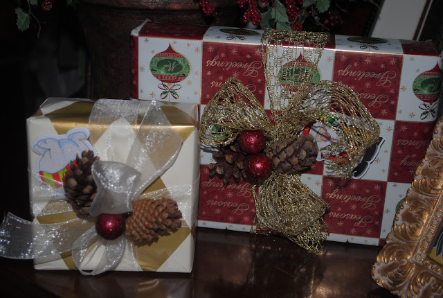 And all the other beautiful decorations you have like the gorgeous bowls filled wtih pinecones, and your gifts (look like you got some great tips from your own post hehe)