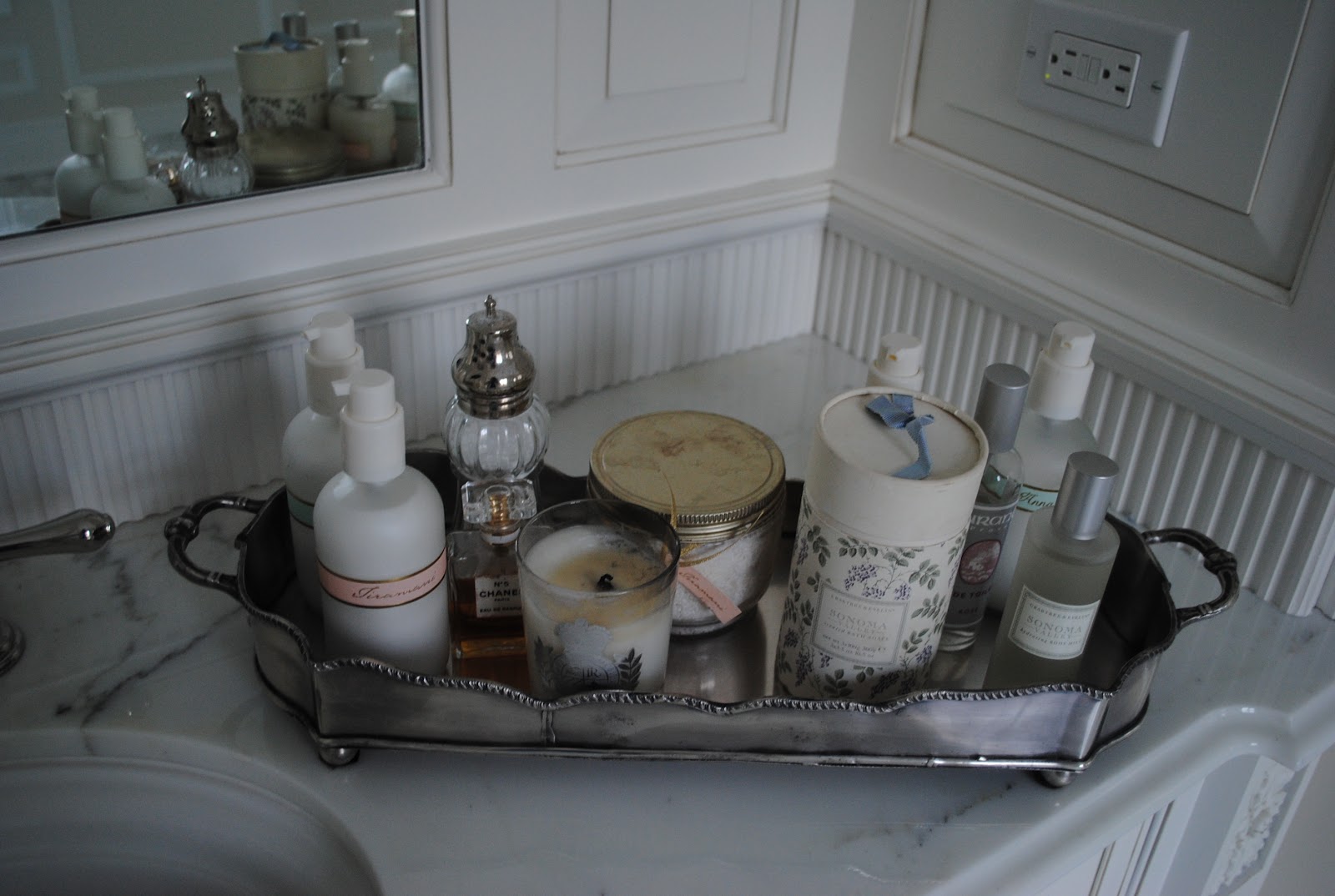Love my bath lotions and powders on a elegant silver tray…makes everything look prettier!