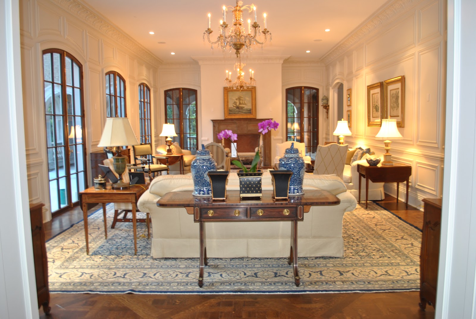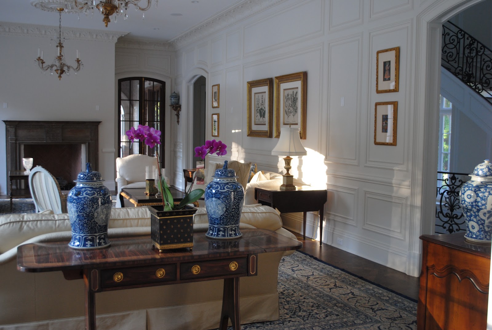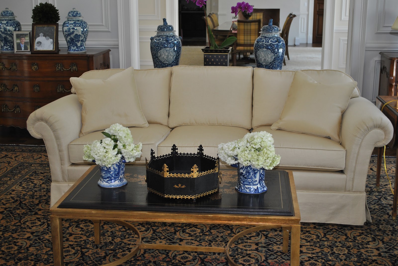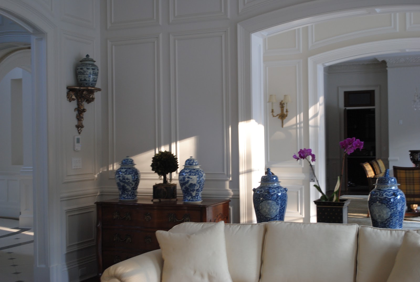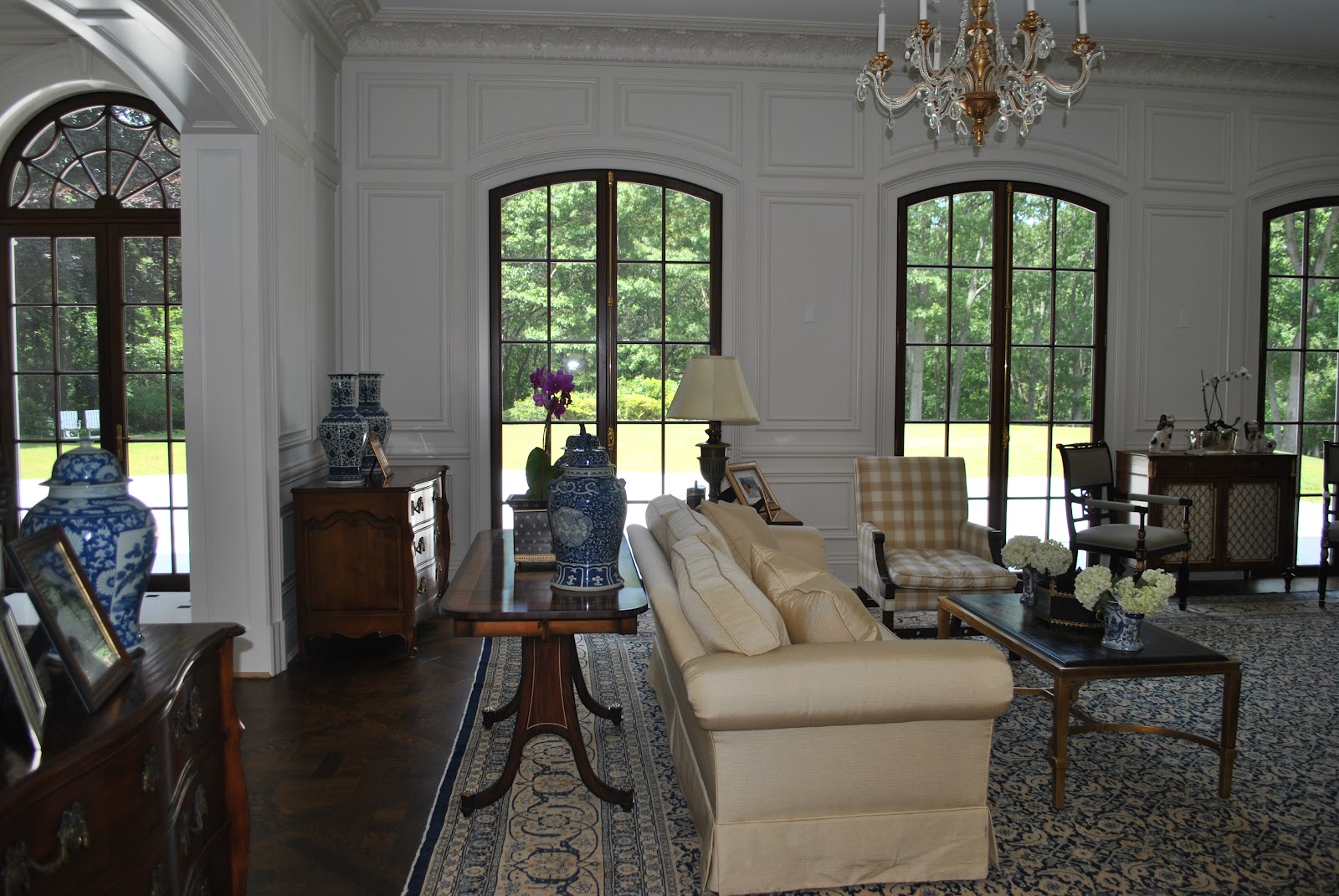 This was a total win/win for both of us. It allowed us to place the furniture exactly as we have it laid out to see if the layout does indeed work as we were hoping and sure enough it does! While the pieces are not all the exact size/shape of what we are ordering it really gives life to the room and certainly allows the room to take on a whole new perspective. We added our own pieces from the old house, some of which were in storage like coffee tables, end tables,some art,etc…..and of course my blue and white and for a temporary setup I must say it came out quite beautiful, if I say so myself. You really forget just how much a room can transform with furniture and all the bells and whistles. This is far from a done room, but it gives you an idea. ?Naturally I just have to share this with you because we all love a good transformation. Lots of pictures, many might even appear to be the same thing and I took some of these at different times of the day. ? So here we go…..enough of my talking!
