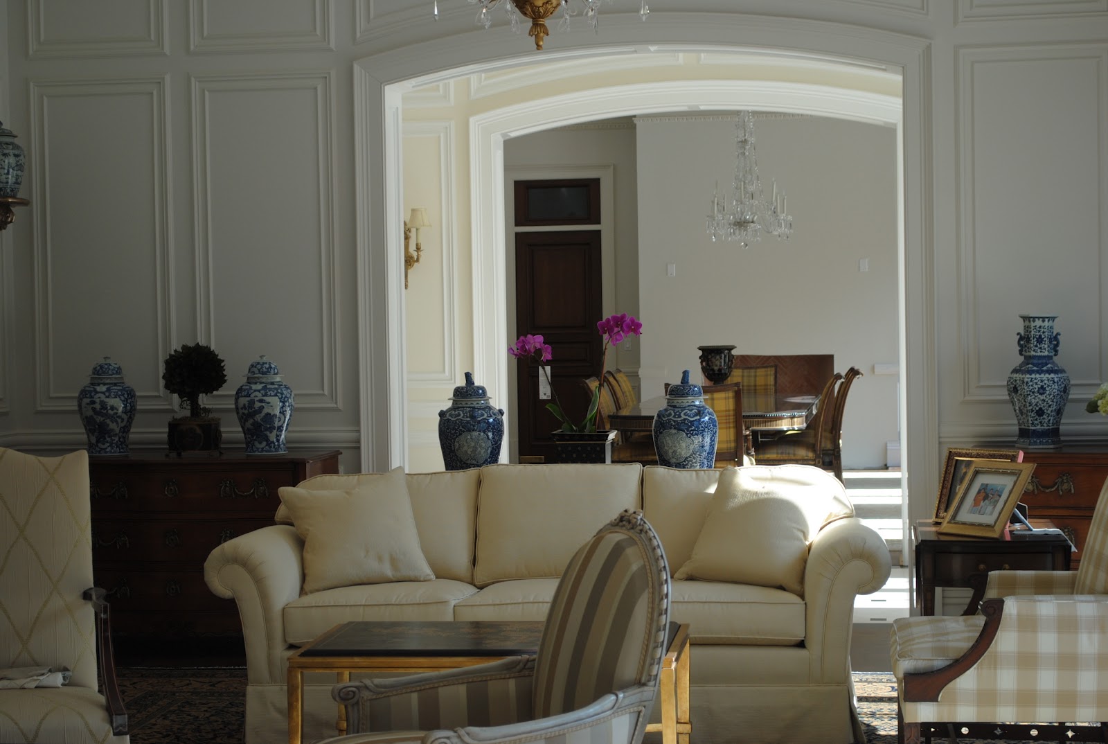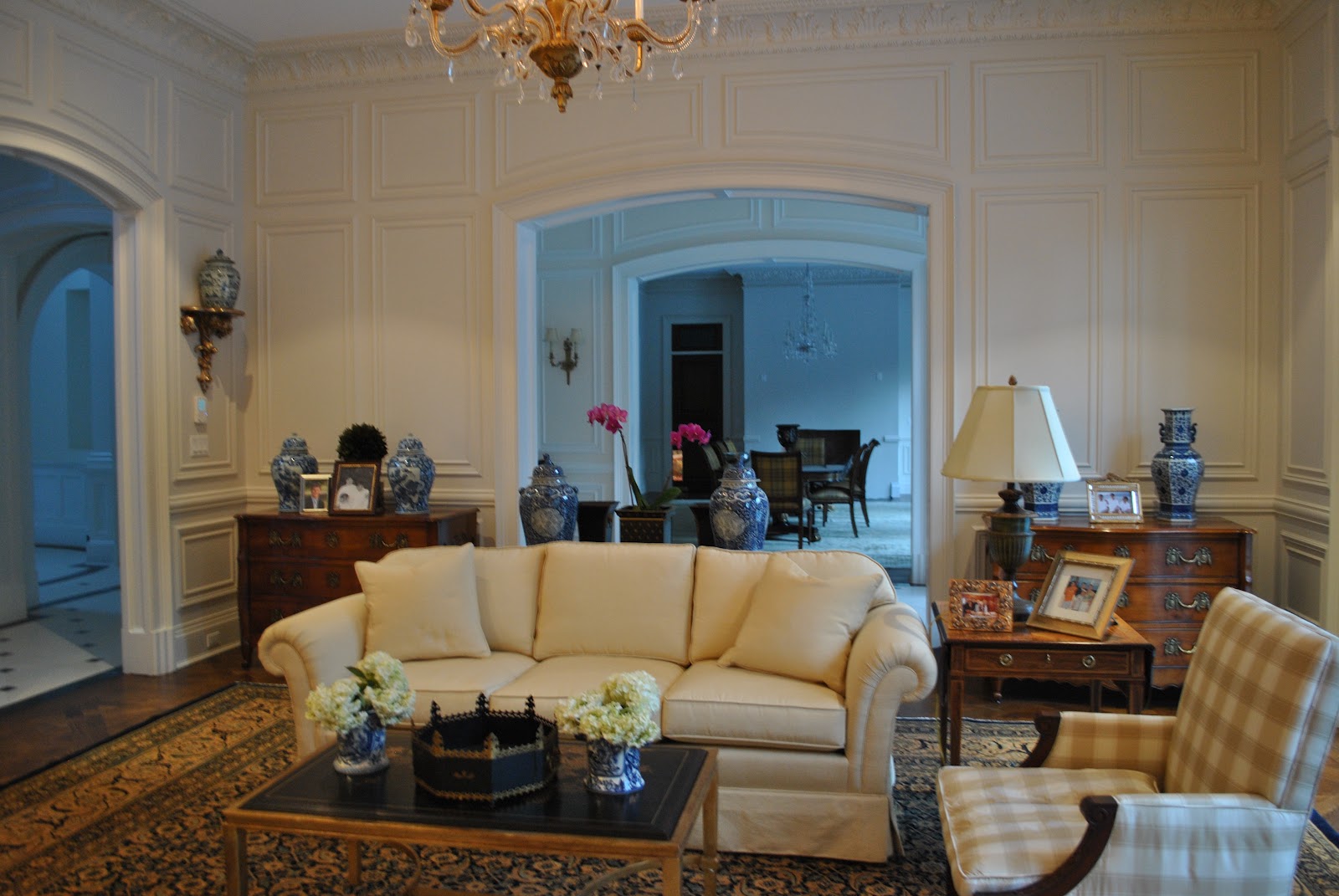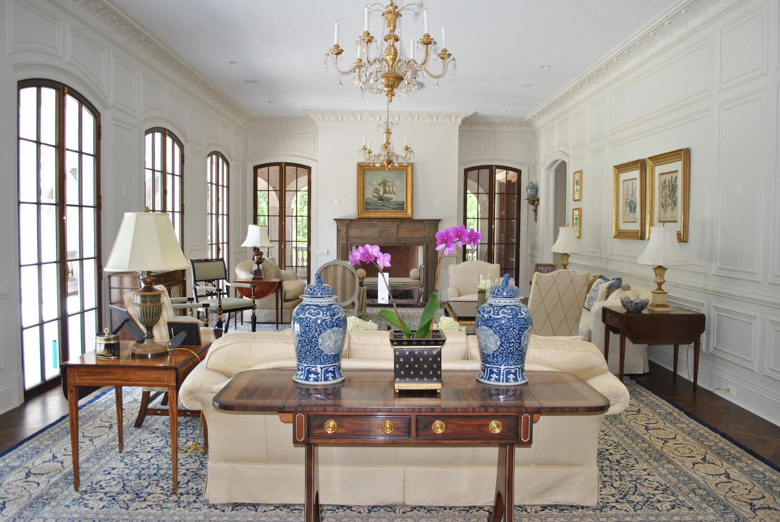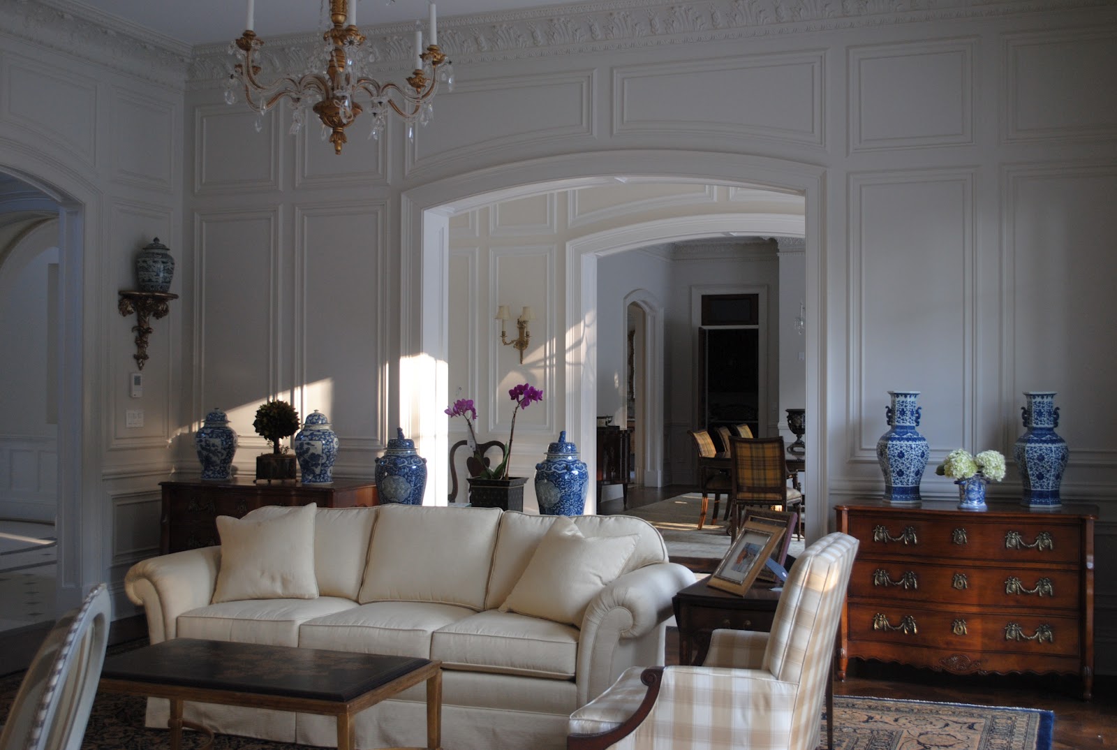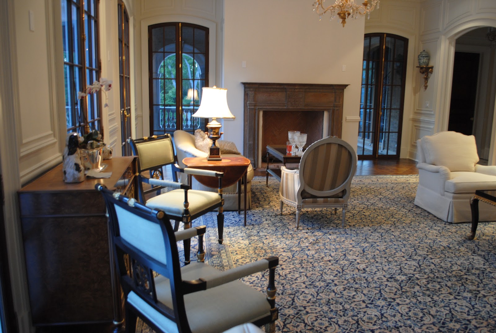 This was a total win/win for both of us. It allowed us to place the furniture exactly as we have it laid out to see if the layout does indeed work as we were hoping and sure enough it does! While the pieces are not all the exact size/shape of what we are ordering it really gives life to the room and certainly allows the room to take on a whole new perspective. We added our own pieces from the old house, some of which were in storage like coffee tables, end tables,some art,etc…..and of course my blue and white and for a temporary setup I must say it came out quite beautiful, if I say so myself. You really forget just how much a room can transform with furniture and all the bells and whistles. This is far from a done room, but it gives you an idea. ?Naturally I just have to share this with you because we all love a good transformation. Lots of pictures, many might even appear to be the same thing and I took some of these at different times of the day. ? So here we go…..enough of my talking!