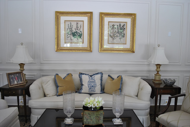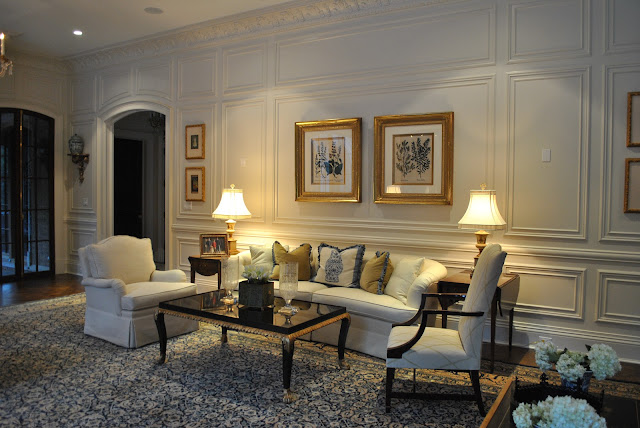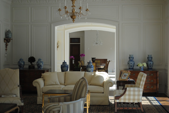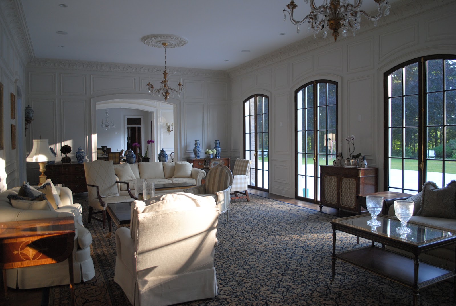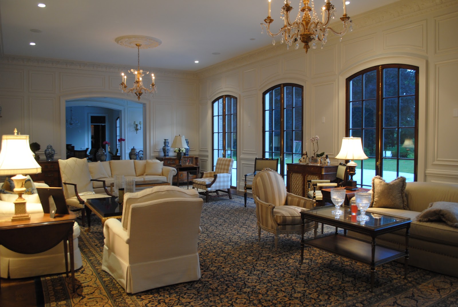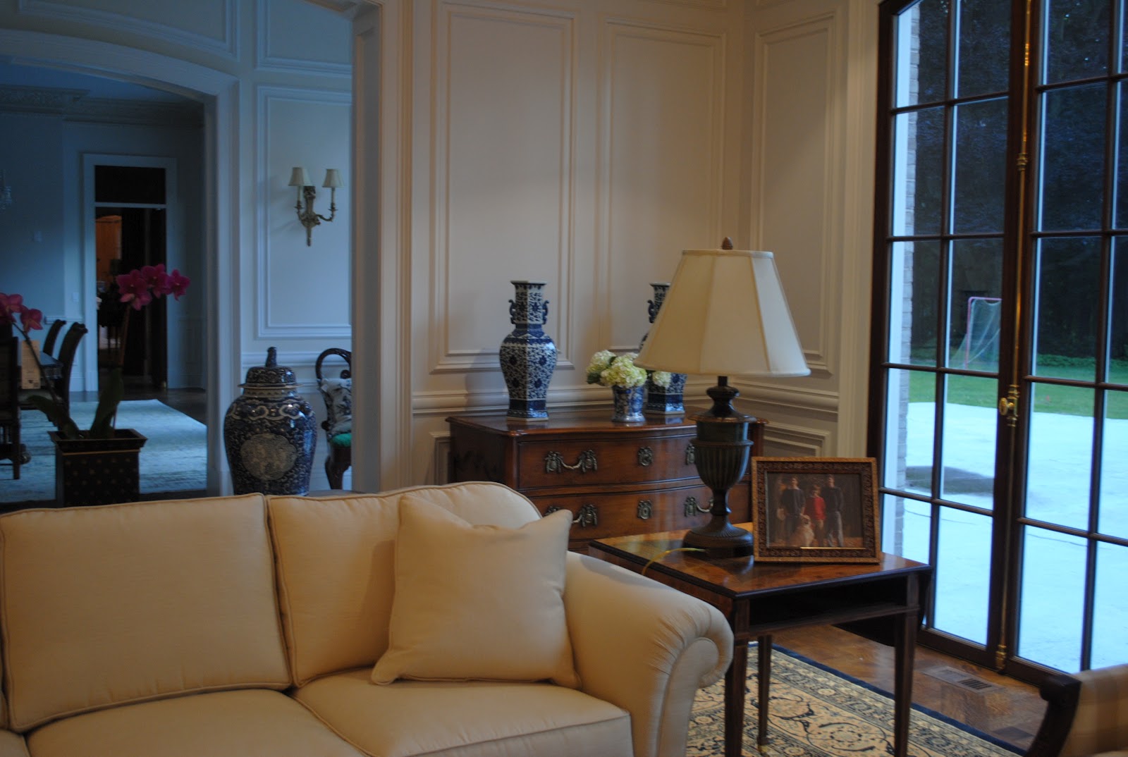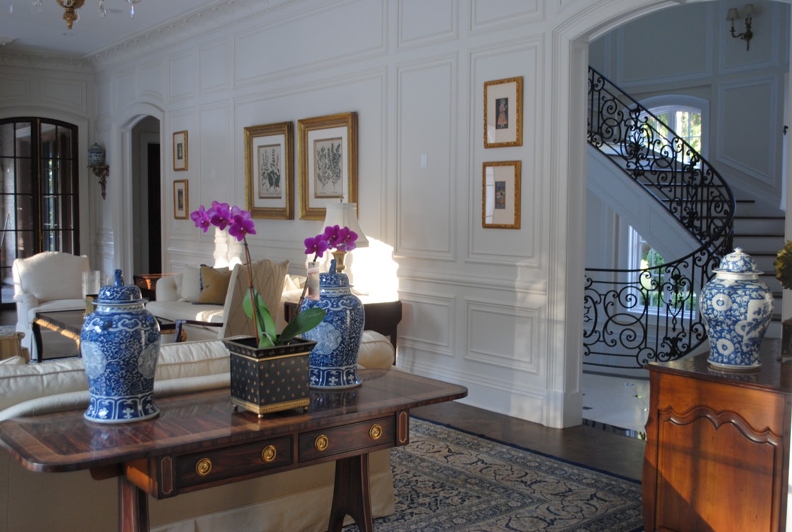 This was a total win/win for both of us. It allowed us to place the furniture exactly as we have it laid out to see if the layout does indeed work as we were hoping and sure enough it does! While the pieces are not all the exact size/shape of what we are ordering it really gives life to the room and certainly allows the room to take on a whole new perspective. We added our own pieces from the old house, some of which were in storage like coffee tables, end tables,some art,etc…..and of course my blue and white and for a temporary setup I must say it came out quite beautiful, if I say so myself. You really forget just how much a room can transform with furniture and all the bells and whistles. This is far from a done room, but it gives you an idea. ?Naturally I just have to share this with you because we all love a good transformation. Lots of pictures, many might even appear to be the same thing and I took some of these at different times of the day. ? So here we go…..enough of my talking!