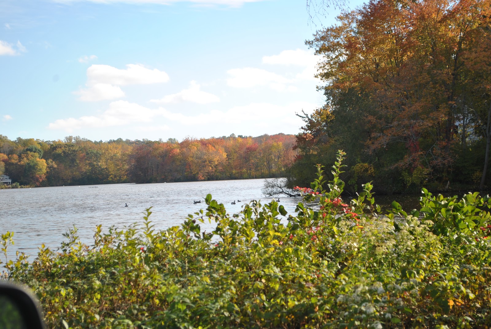 Your area resembles mine with the lakes/ponds and the fabulous fall color. You are just enjoying so much here and your front entrance is gorgeous. I gave up however, on putting out gourds on my front porch; those darling but devilish squirrels EAT THE PUMPKINS then scatter them about to rot! ARGH!
