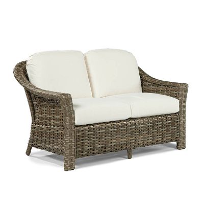 What a beautiful outdoor space. The fireplace is fantastic and I love the wicker furniture options.