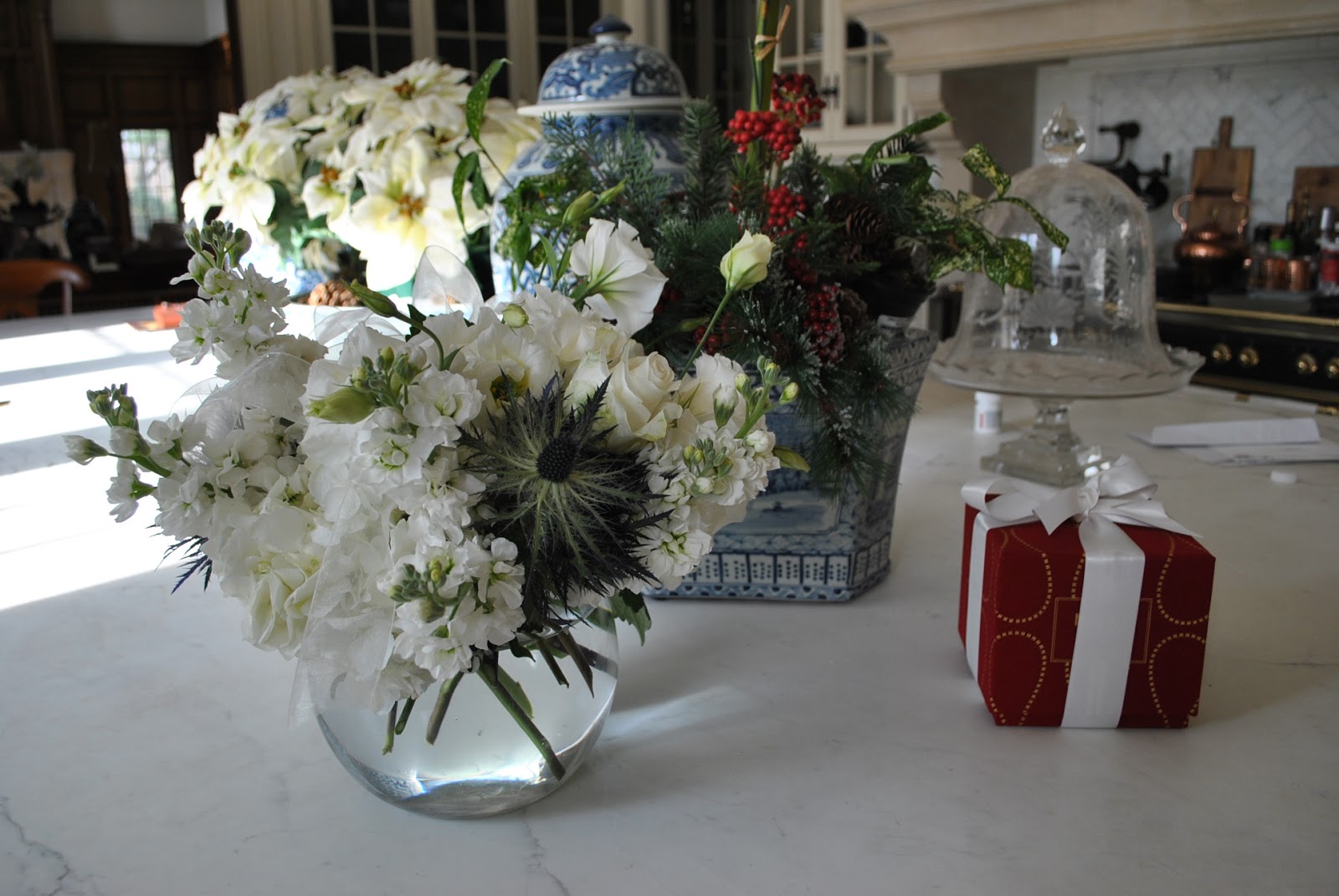 ?My very generous friend, came bearing gifts….these gorgeous flowers (she knows my love for white flowers) and these were exceptional and this beautiful holiday candle from Nest, too pretty to open!