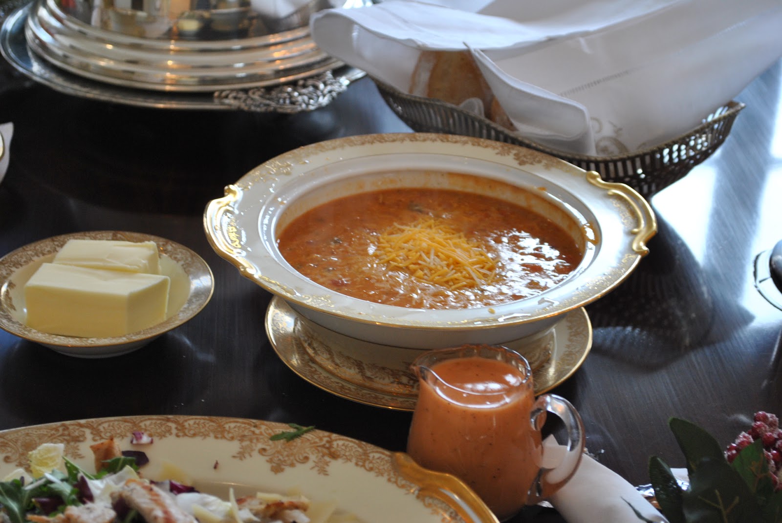 I missed a dear friends birthday so invited her over for a one on one lunch.? I wanted to have it look pretty and we had such a nice time. I made my usual tricolor salad with grilled chicken and shaved Parmesan, a yummy chicken tortilla soup, fresh sour dough rolls and for dessert I was very practical, instead of a cake that would likely go to waste,