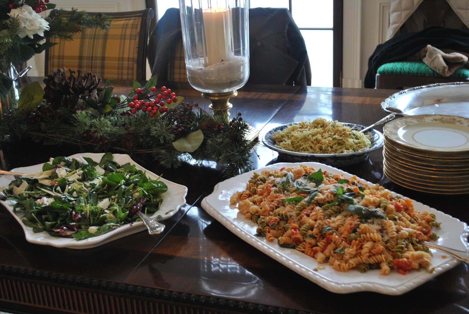 Wow everything is so elegant and beautiful, that must be what its like to have lunch in the White House! I bet everyone was so impressed, Tina. And your spread is amazing, yummy. I am getting hungry just looking at all of it, your presents are gorgeous, you gave ma a great idea with the greenery, thank you. Have a great day and really glad you are going to take it easy, am sure that was a lot of work!
