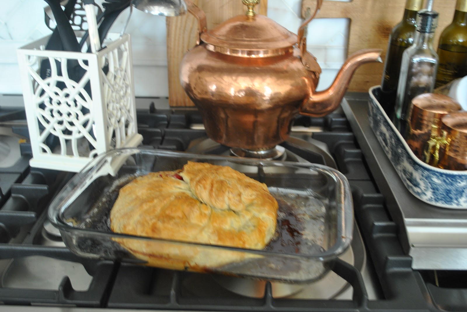 Yummy…..the brie is ready to come out of the oven!