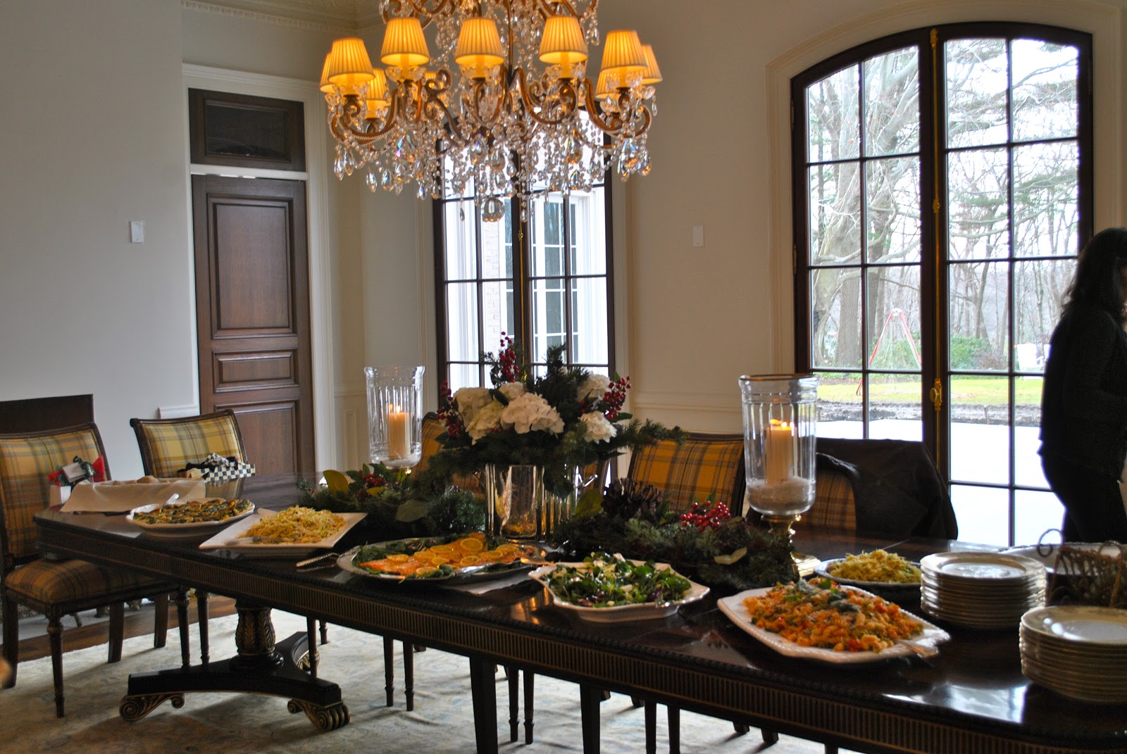 The house looks beautiful, the food divine. Love the wreath and the doors!