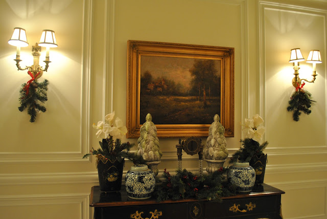 It was worth the wait. Your Christmas House is lovely, as expected. I love those moss orbs in the urns. And I love the moss green color in the bows on your wreath and tucked in elsewhere. That color really speaks to me.