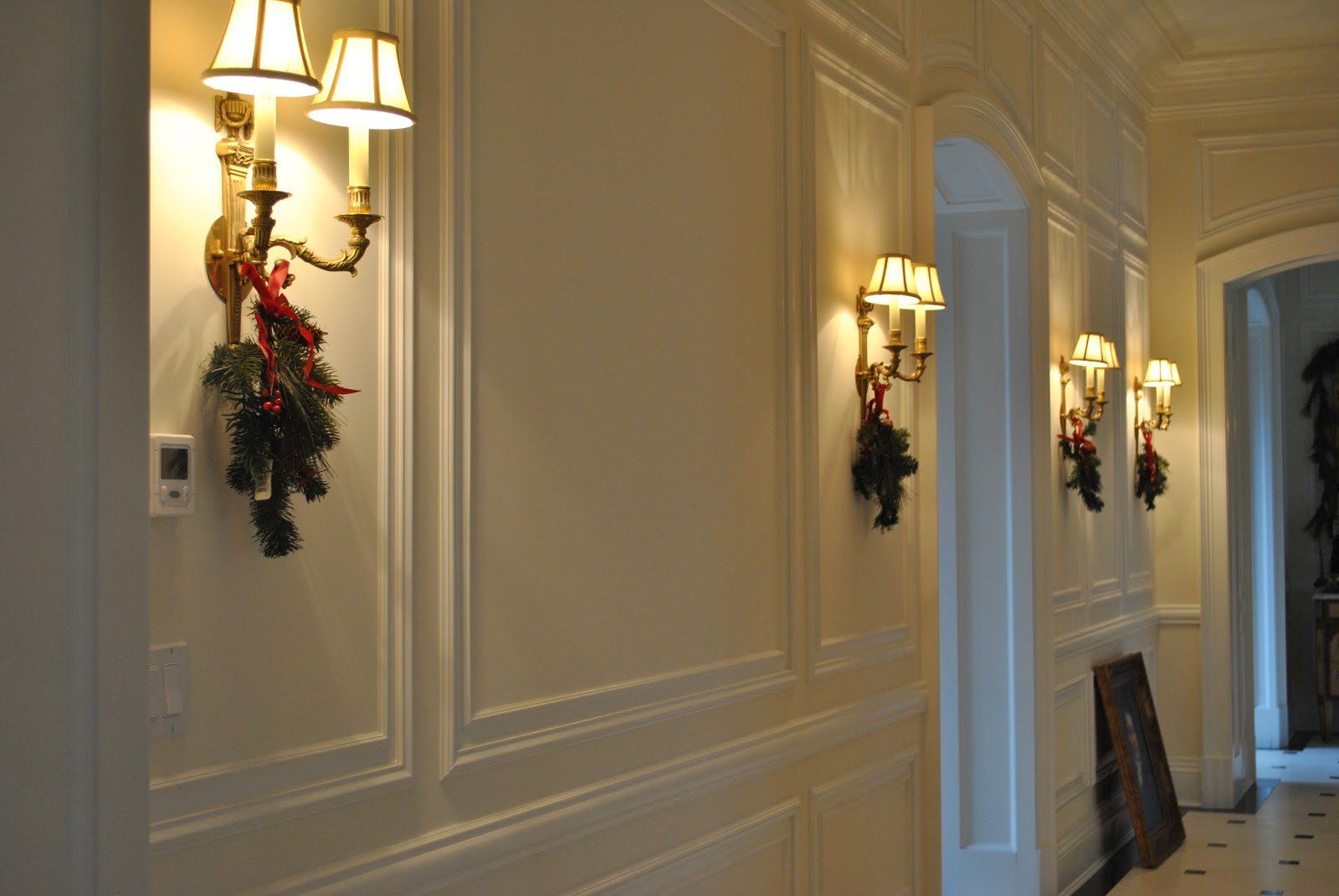I added sprays of evergreen and berries tied with red ribbon onto my sconces for a little holiday spirit