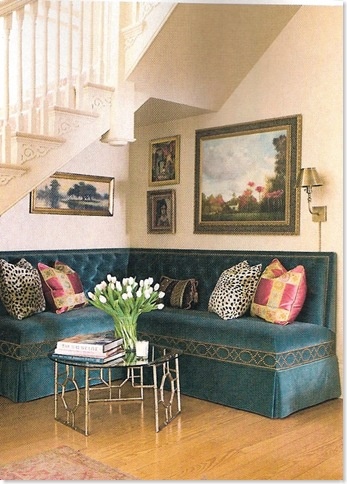 Thank you Thank you Thank you Tina….Now i can sleep. You dont know how this just saved my sanity. I also love velvet. Especially a teal (deeper turquoise). I just ordered a sectional in this color because its what I love and wanted. Well you know, the second guessing starts and my son even said… hmmm, turquoise velvet mom, that sounds a little tacky. So now I can be assured that I am going to love it. Im doing camel velvet with camel and teal fringed pillows on it too. After seeing that banquette, I might need to throw a little animal print on it too… I’ll show them…tacky!! Thanks for the perfect post today. Pam G.