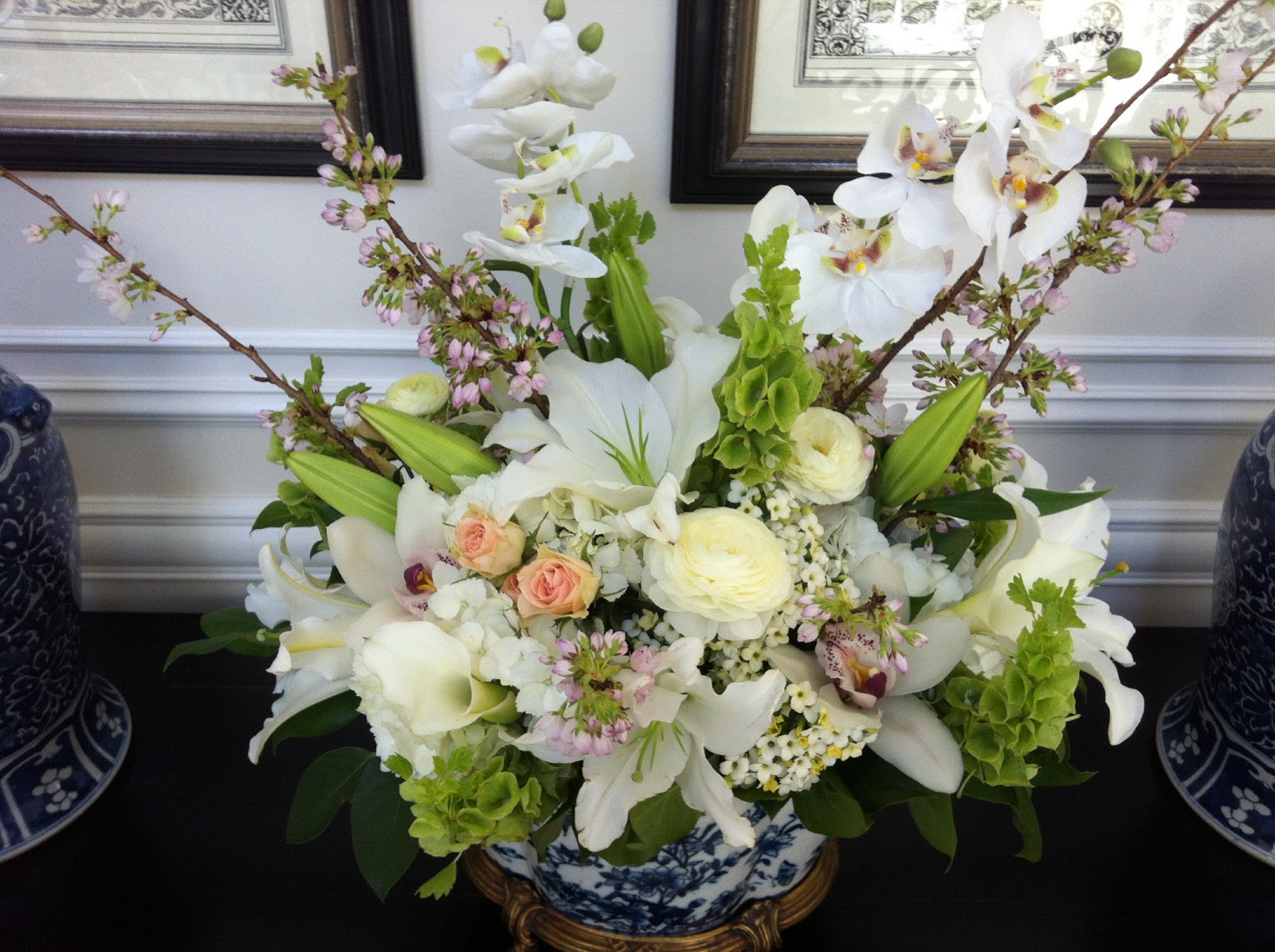 You truly have a “dream home”. Just Lovely! Love the arrangement with lily, roses, orchids…with just a hint of color. I will be doing the arrangements at our Clubhouse in our community for Mother’s Day..mind if I borrow your idea?