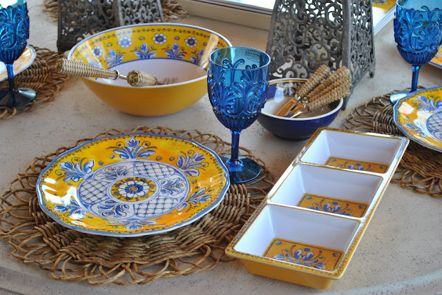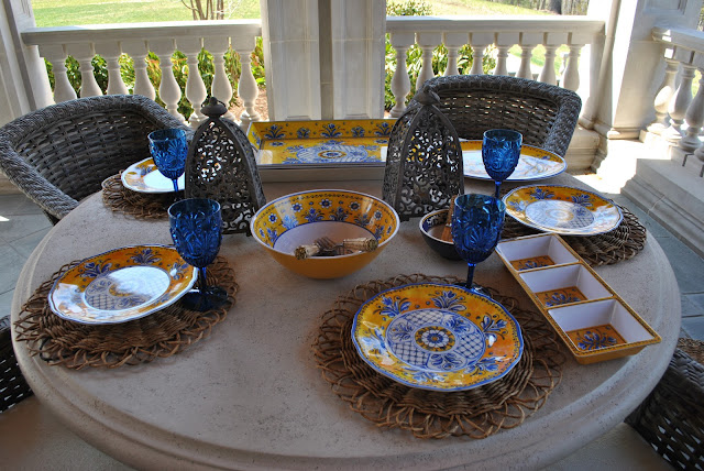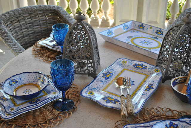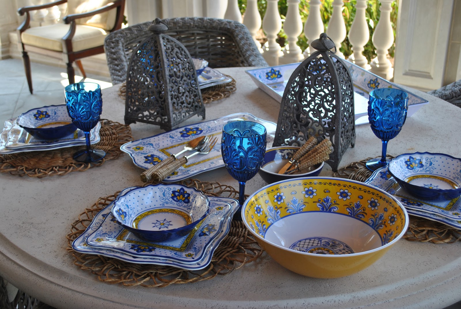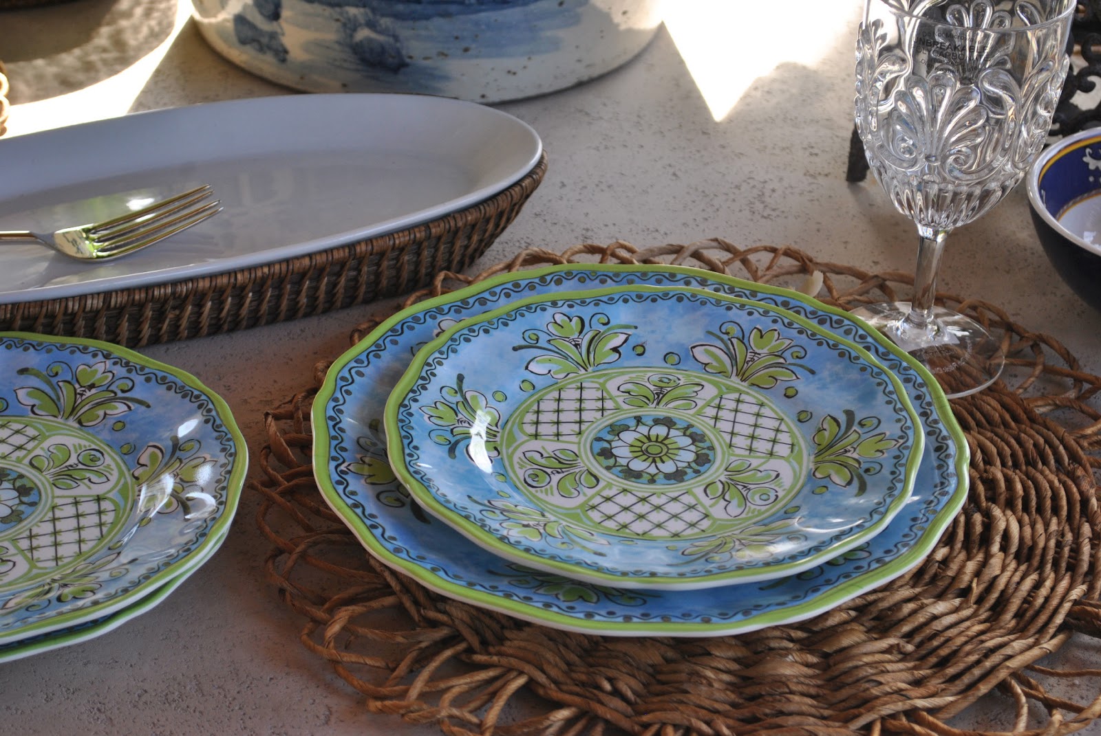 So pardon my amateur photos but you get the idea, I even set up my table with all the different patterns of the melamine dinnerware and I had such fun. I have to say I haven’t been this excited over a new product as I am this, to be able to call outdoor plastic dinnerware exquisite is really saying something but it is! So enough of my gabbing…have a look!