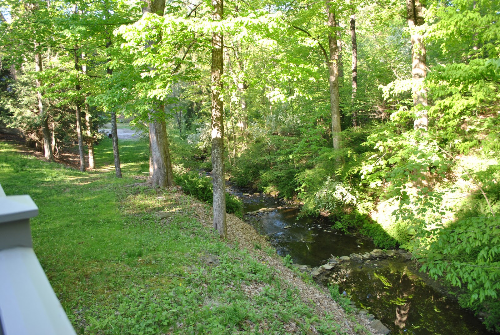 My beautiful terrace overlooking the woods and a babbling brook…..
