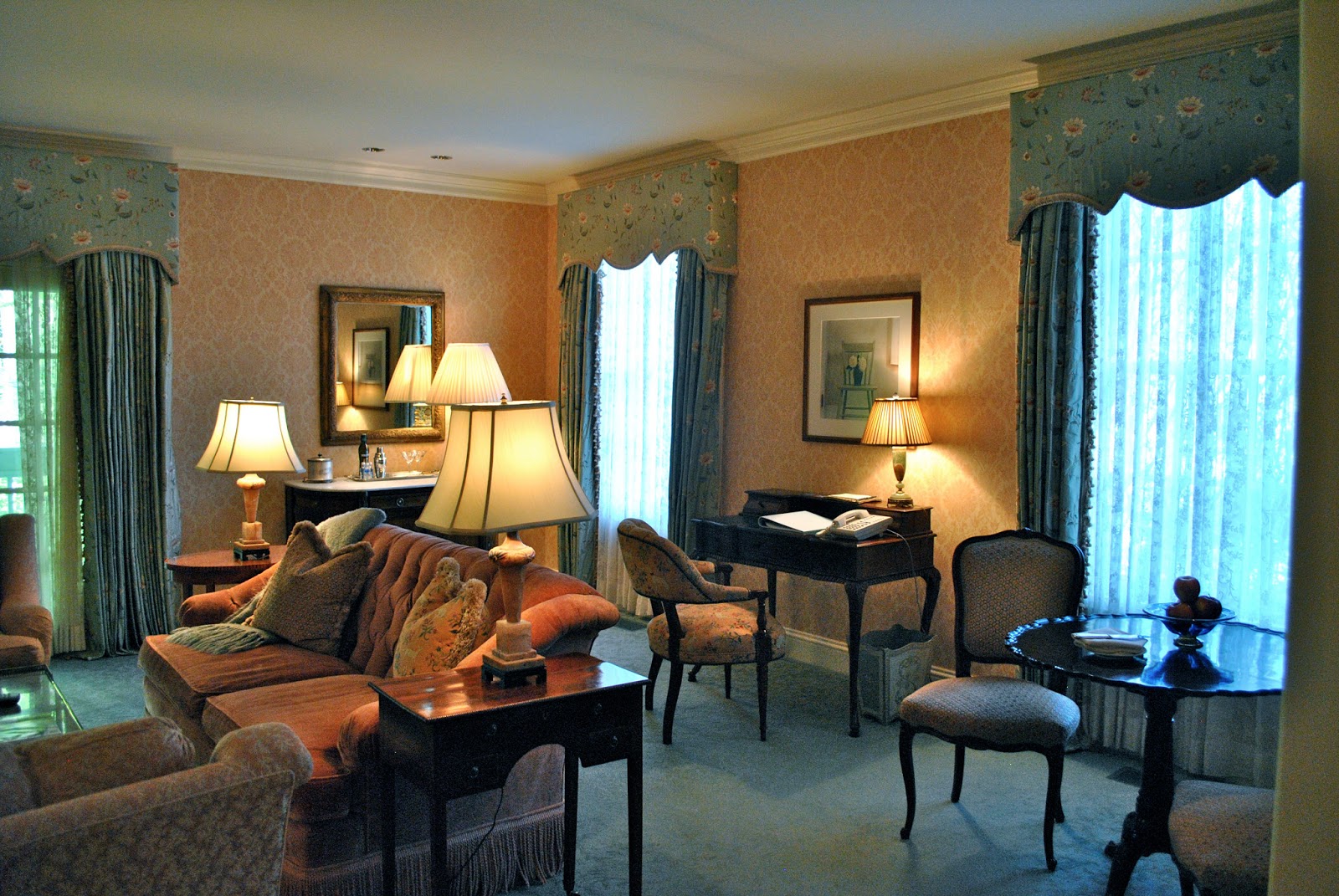 Gorgeous furnishings, window treatments and even a ladies writing desk, love the onyx lamp!