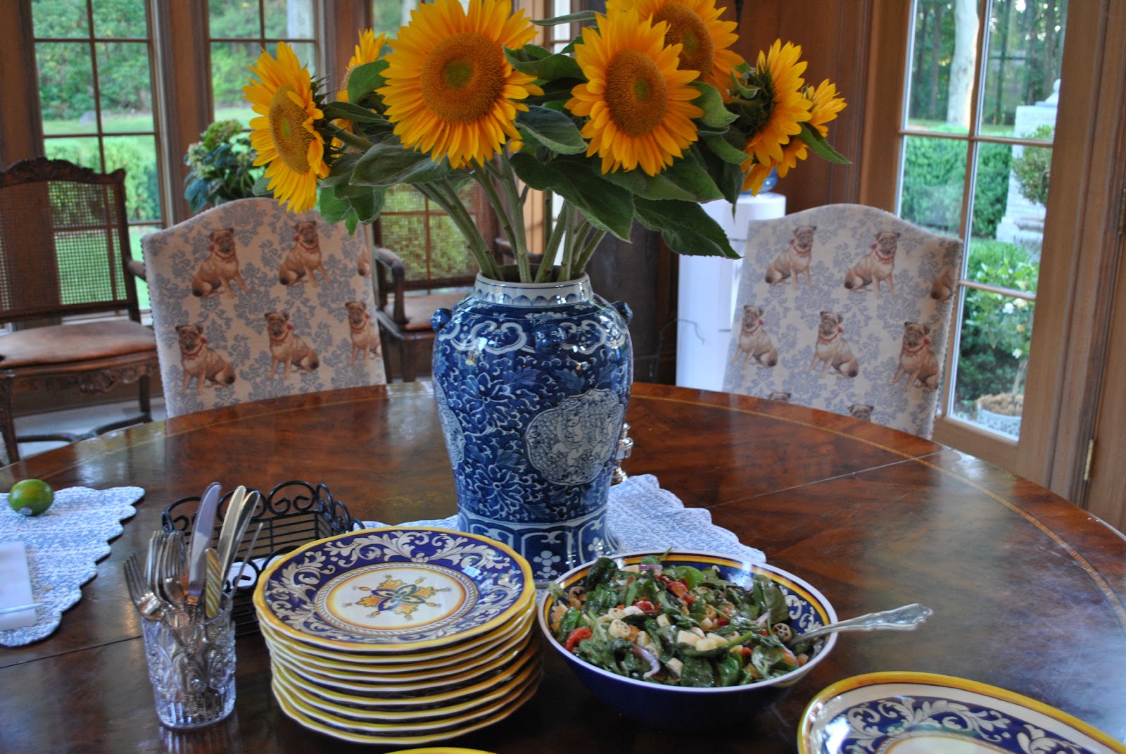 And the huge sunflowers in this large blue and white vase…love the color combination