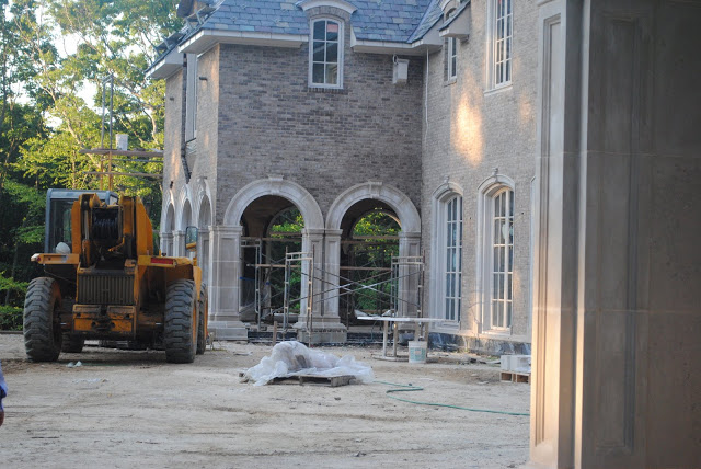 ?And then over the next four years ( four looooooooooong excruciating years) our house came to be but only after batallions of workers, countless piles of supplies, thousands of nails, hundreds of hours of appointments with our builder and architects, miles of wood flooring, endless number of meetings, palette after palette of marble tiles, acres of slate roofing, pages and pages of plans, countless decision making sessions, battalions of crews, endless and long days, much sweat, blood and tears, stress to last a lifetime walked through that door and then and only then was it a home!
