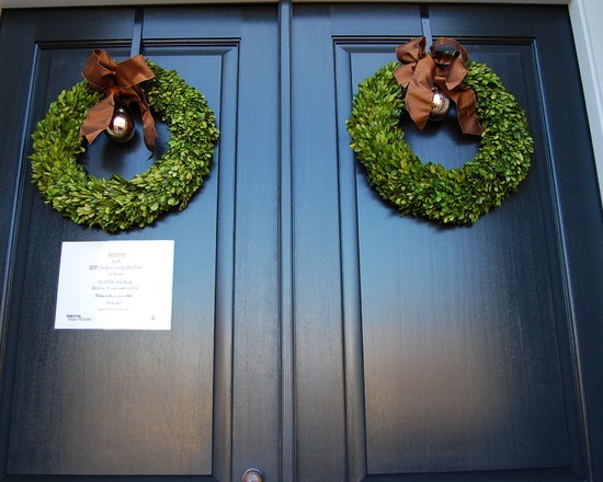 The classic round boxwood wreaths… Perfection !