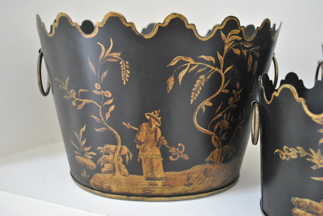 Some of you asked about the black tole scalloped planter like I have above, yes there are 2 pairs left ($115) one set of three ($145). Email me if interested by clicking here.