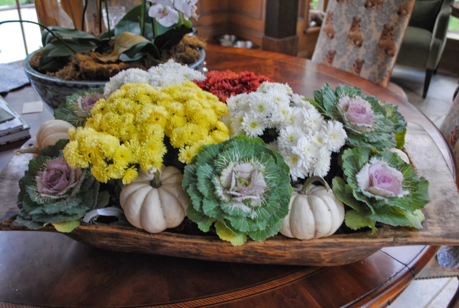 I think I will steal your idea with the dough bowl. I love the look of the cabbage with the white pumpkins. Hope you don’t mind!?