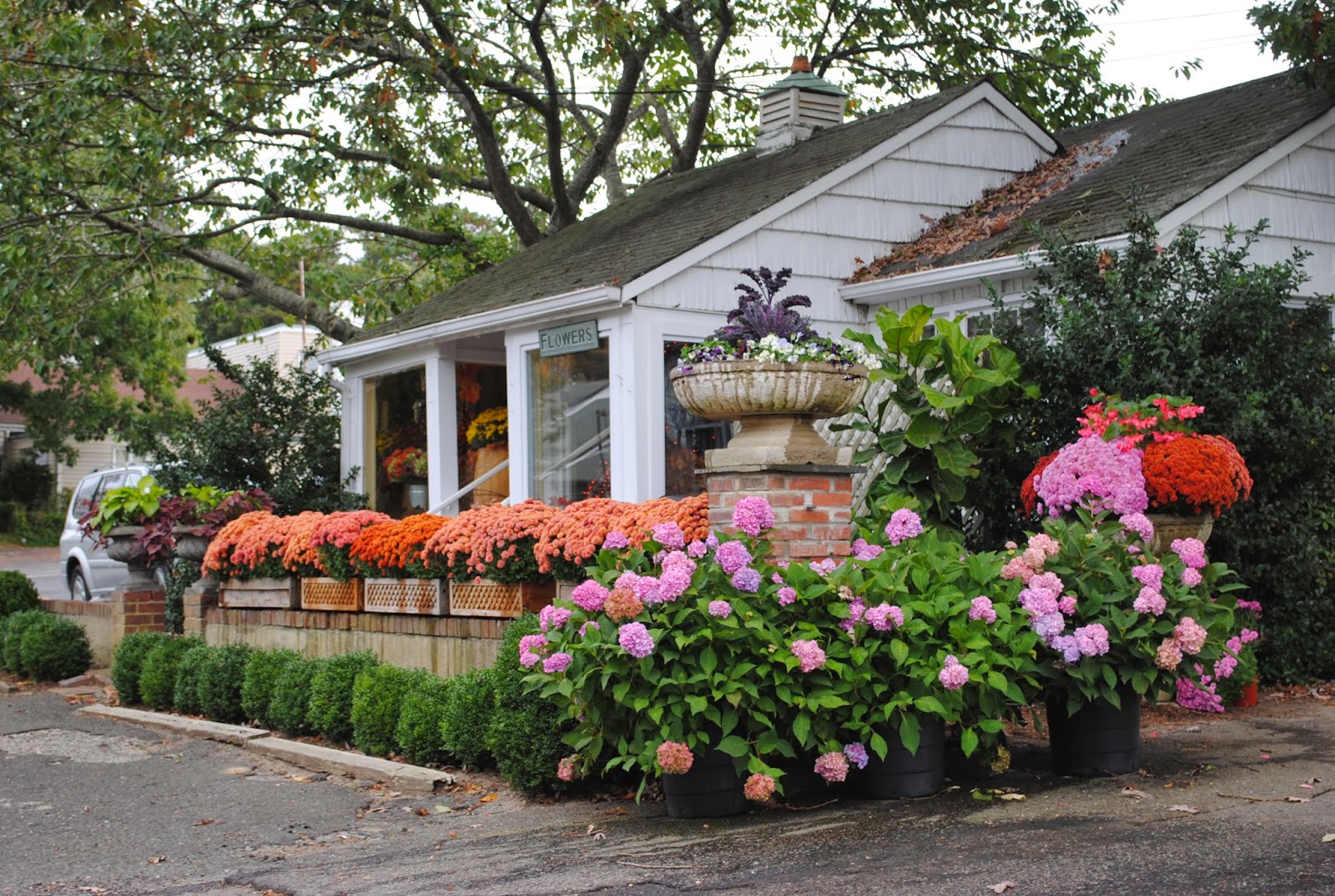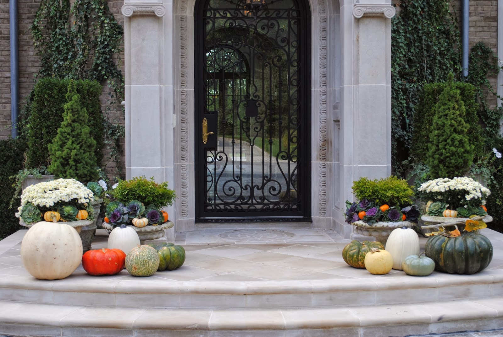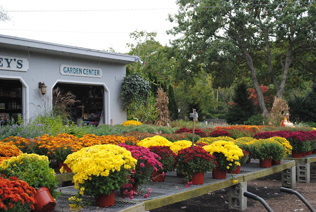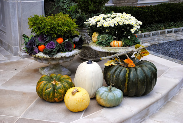 I am going to copy your front door urns. I love them! How smart to mix fresh and fake pumpkins…never would have thought to do that. See, I learn something every time I visit. The Hamptons looks like such a fun day trip. Love the looks of that beautiful nursery. Thanks for taking us there-