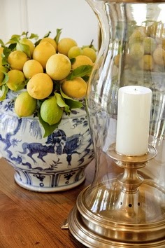 Love the effect of cheery sunny yellow against blue and white porcelain