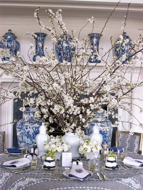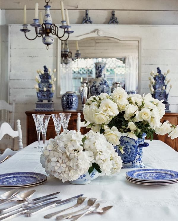 Gorgeous table setting….white and blue and white flowers go together so beautifully!