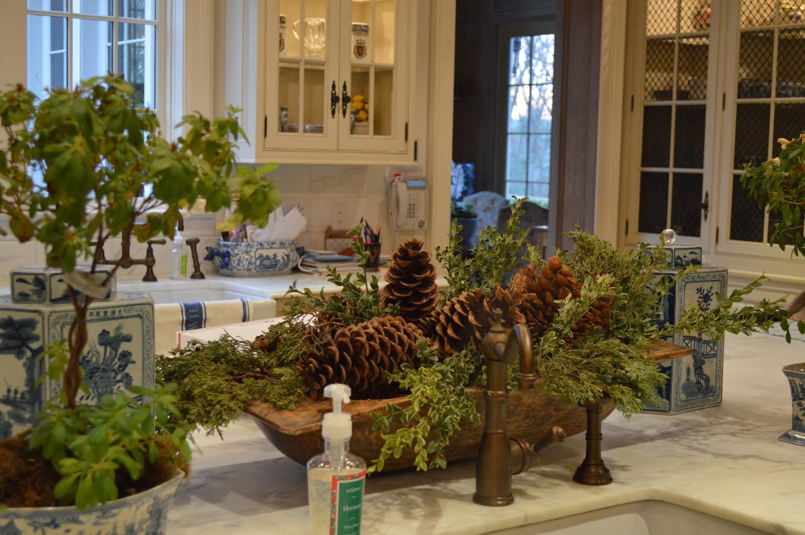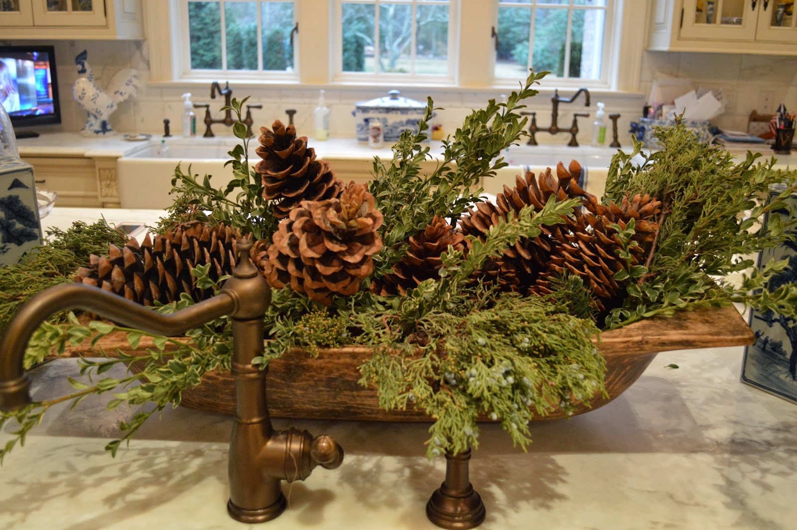 Everything is lovely Tina and I have to tell you that the dough bowl I purchased last year is filled with greens and pinecones;) I like yours in the kitchen! Mine is up on a shelf in my family room.. and I’m thinking of bringing it down for my party today. I’ll be taking a few picks (hopefully for the blog) I’ll try to incorporate the dough bowl into the pics. The pinecones are so pretty everywhere. I need to get a string of them.. love that idea. Your list at the top is a good one! You’ve covered everything.