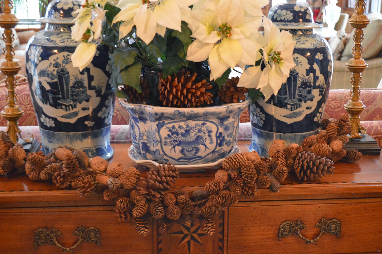 Tina I always love seeing your holiday decor. It is amazing how pinecones, greenery, poinsettias, holly and orchids combined turn into the most elegant arrangements!