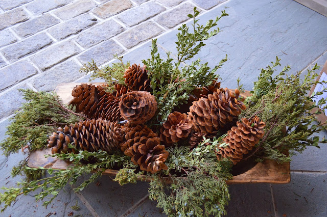 I filled it with all kinds of wonderful greens, pinecones and magnolia leave…rustic elegance:)