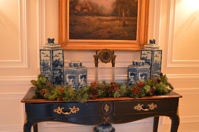 From your front door to the foyer to the kitchen, so warm, festive and gracious!! I especially love your tabletop vignettes of blue-and-whites with the holiday decor, Tina. Look forward to part 2.