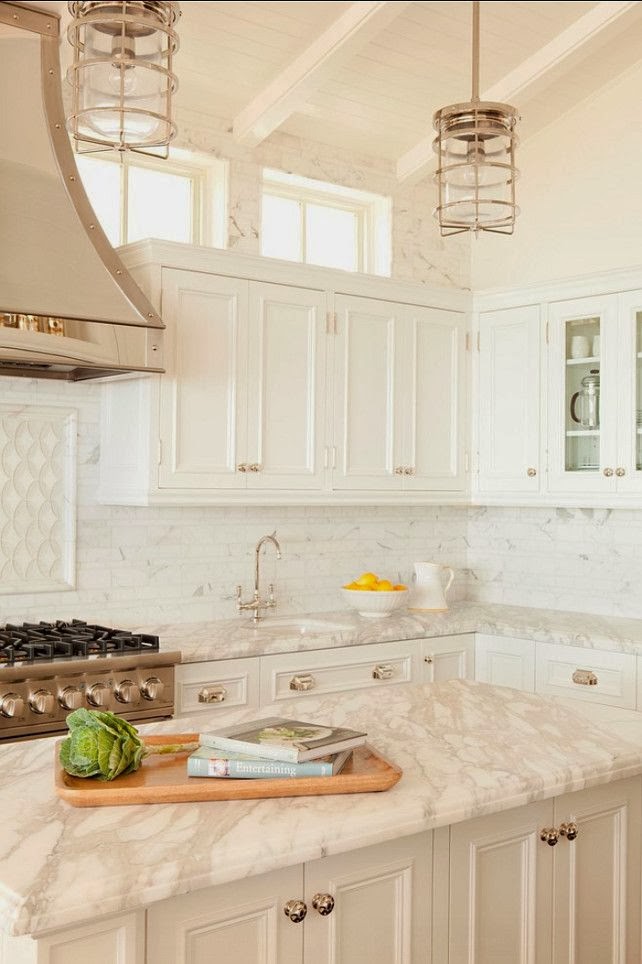 There is certainly something very appealing about an all white kitchen and luscious white marble counterops, Homebunch