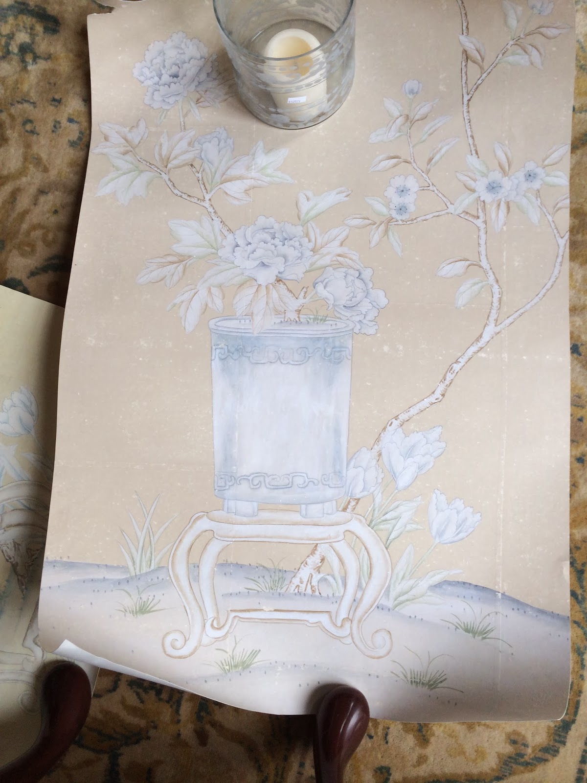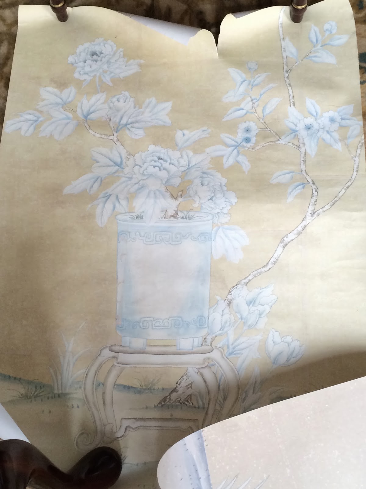 Now that the holidays are over, I am going back to the drawing board on a number of projects, with the bedroom and my dining room being two of the most important. Still tweaking but getting closer every day to the final background color of the gorgeous chinoiserie which I know will transform the space…..