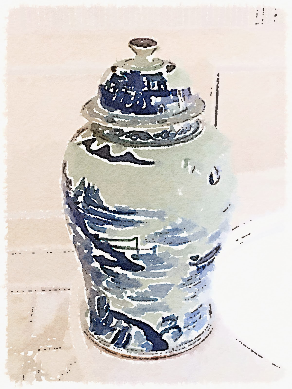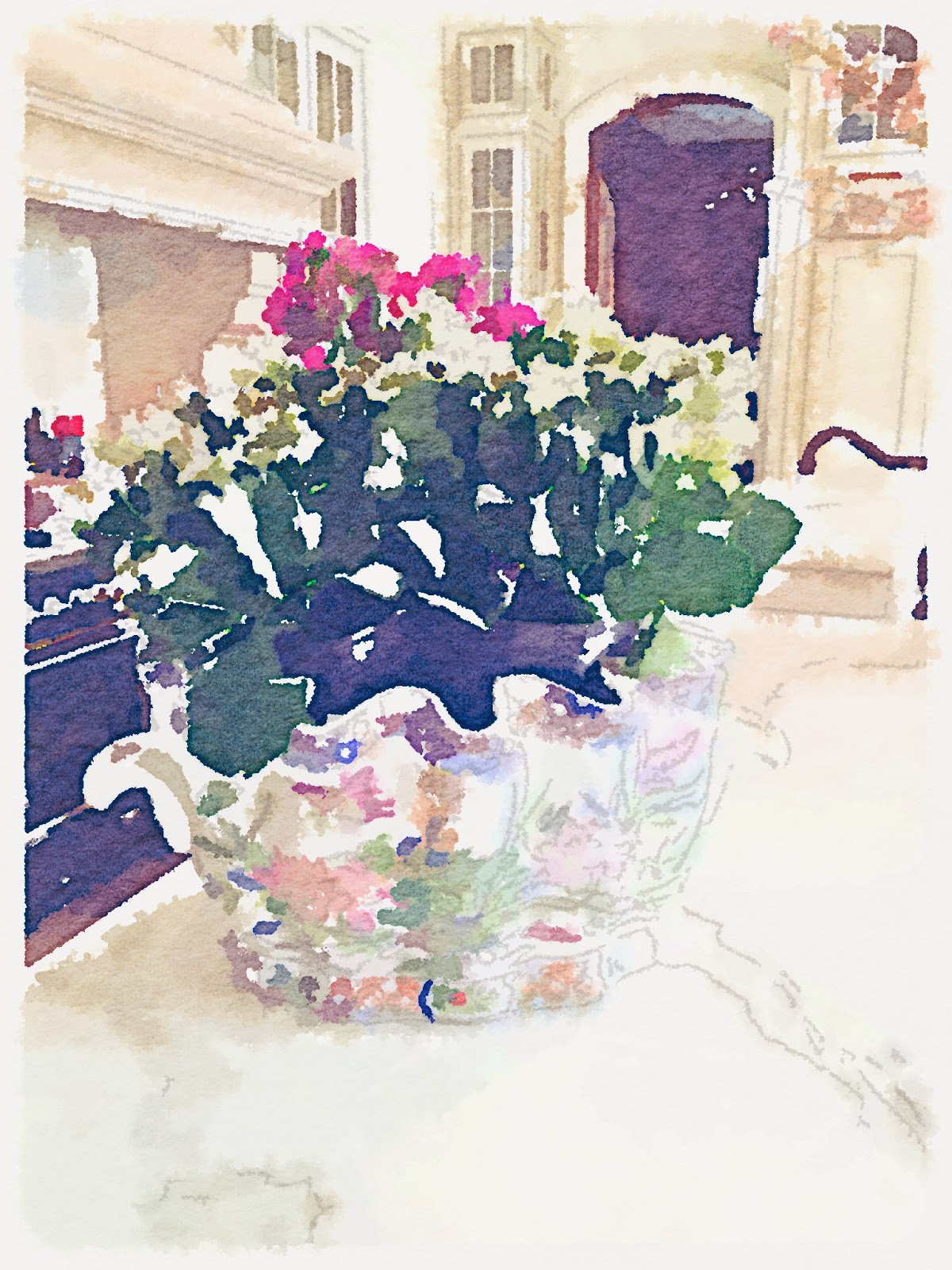 I just took my iPhone around the house and started snapping away. (my blue and whites made an excellent subject and were way more cooperative than Mr. Teddy who finds technology ridiculous and gave me dirty looks while trying to have him pose)…..with a quick press of a button my images were instantly transformed into beautiful watercolors!So here are a few examples of how cool  this is, and if you don’t know  of it, I highly suggest you get it….I promise you will have a lot of of fun with it!