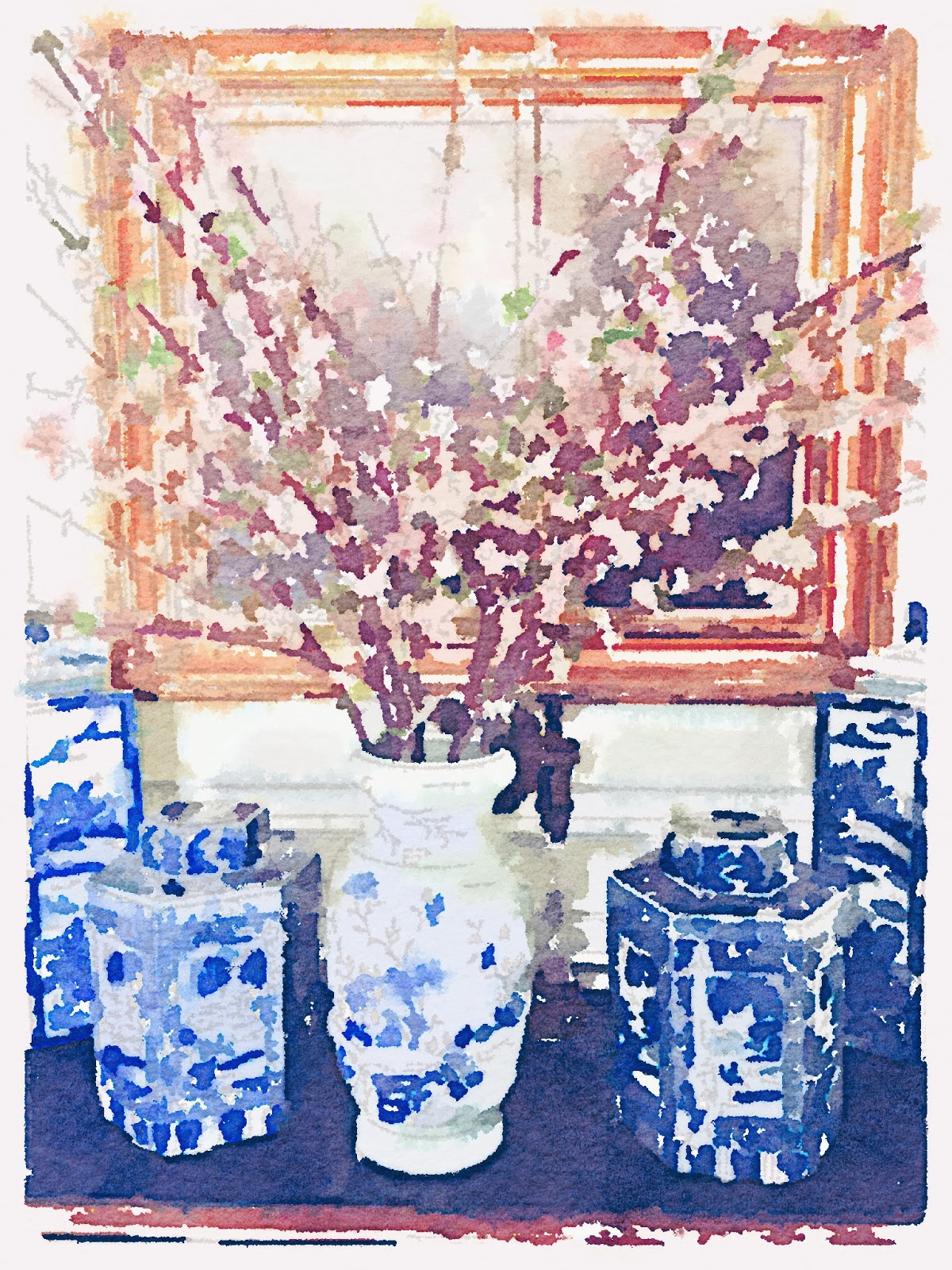 I am just dying over these “paintings”…my favorites and the oranges in the blue and white bowl and your chest with the cherry blossoms on it. I have zero artistic talent but I am anxious to try the app too.