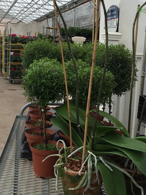 So I am very very happy that I too have my own little brigade of myrtle topiaries, and as luck would have it I also scored some gorgeous orchids and one of my favorite fall plants, white azalea topiaries!