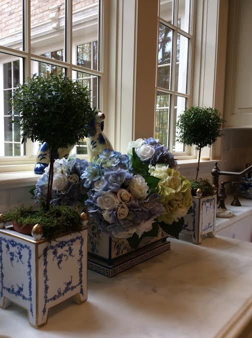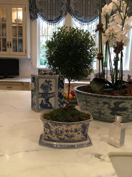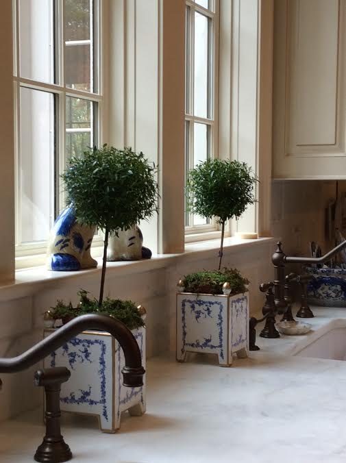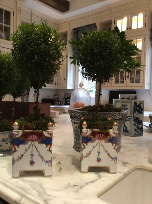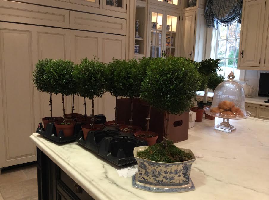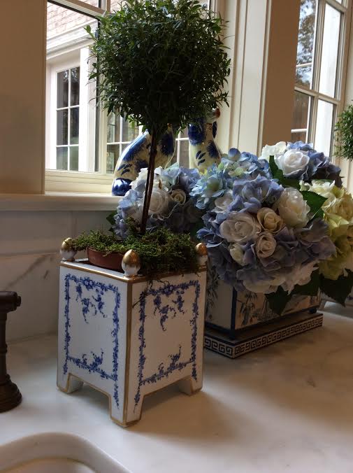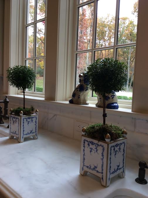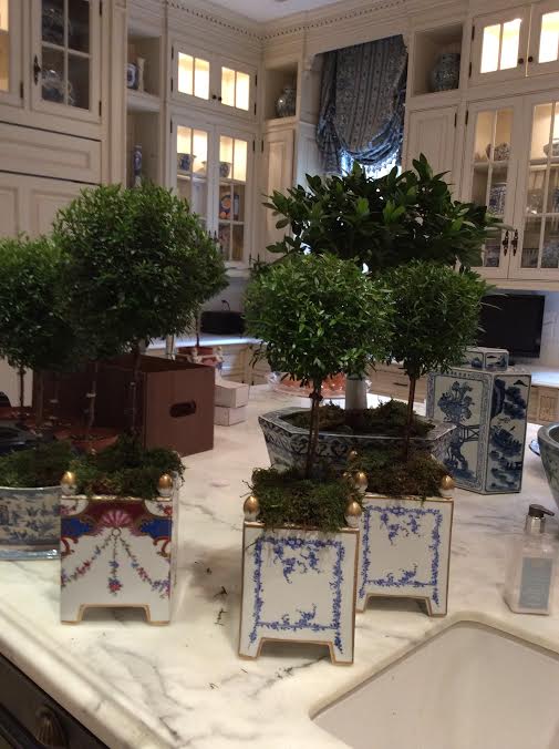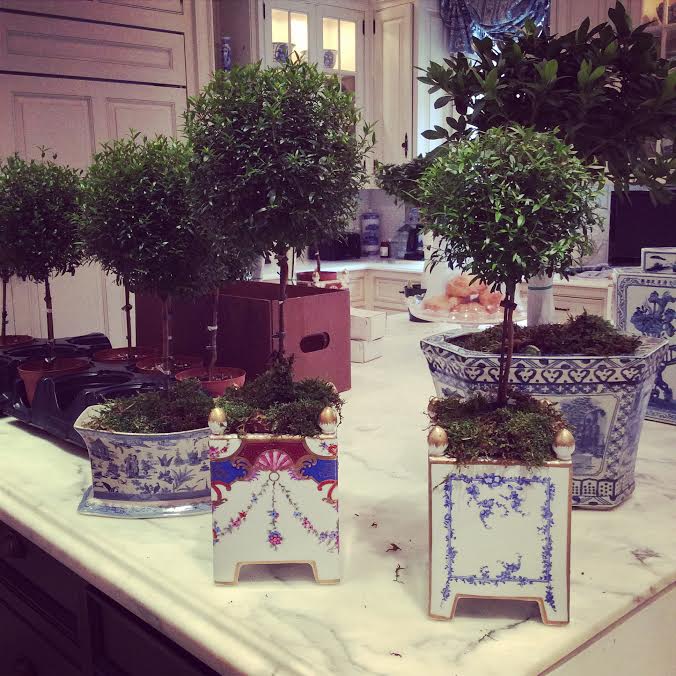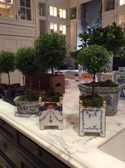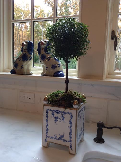 I have one, lonely little topiary in a blue and white container on my kitchen counter. You’ve inspired me to buy more.