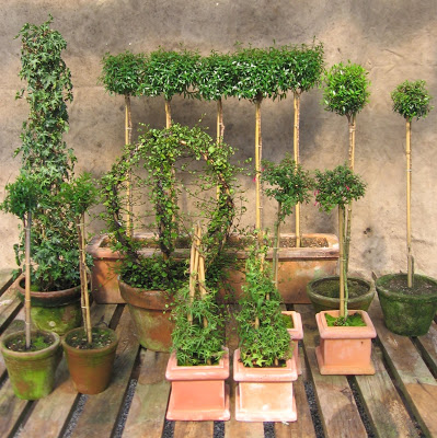 I don’t know if I’m more jealous of the brigade of topiaries, or the beautiful cachepots that you have at the ready. Exquisite.
